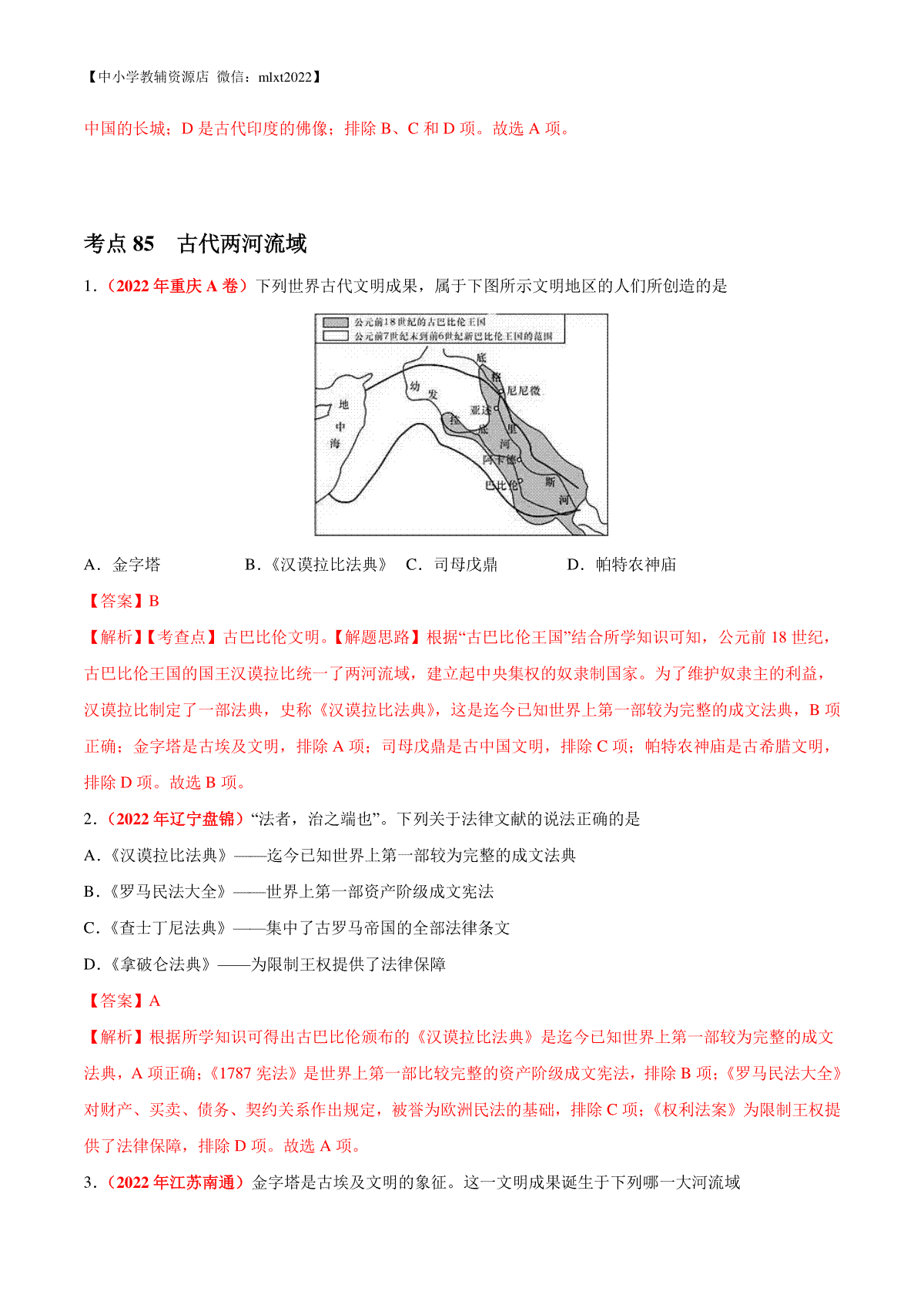 1.专题20 古代亚非文明和欧洲文明(第01期)-2022年中考历史真题分项汇编(全国通用)(解析版)