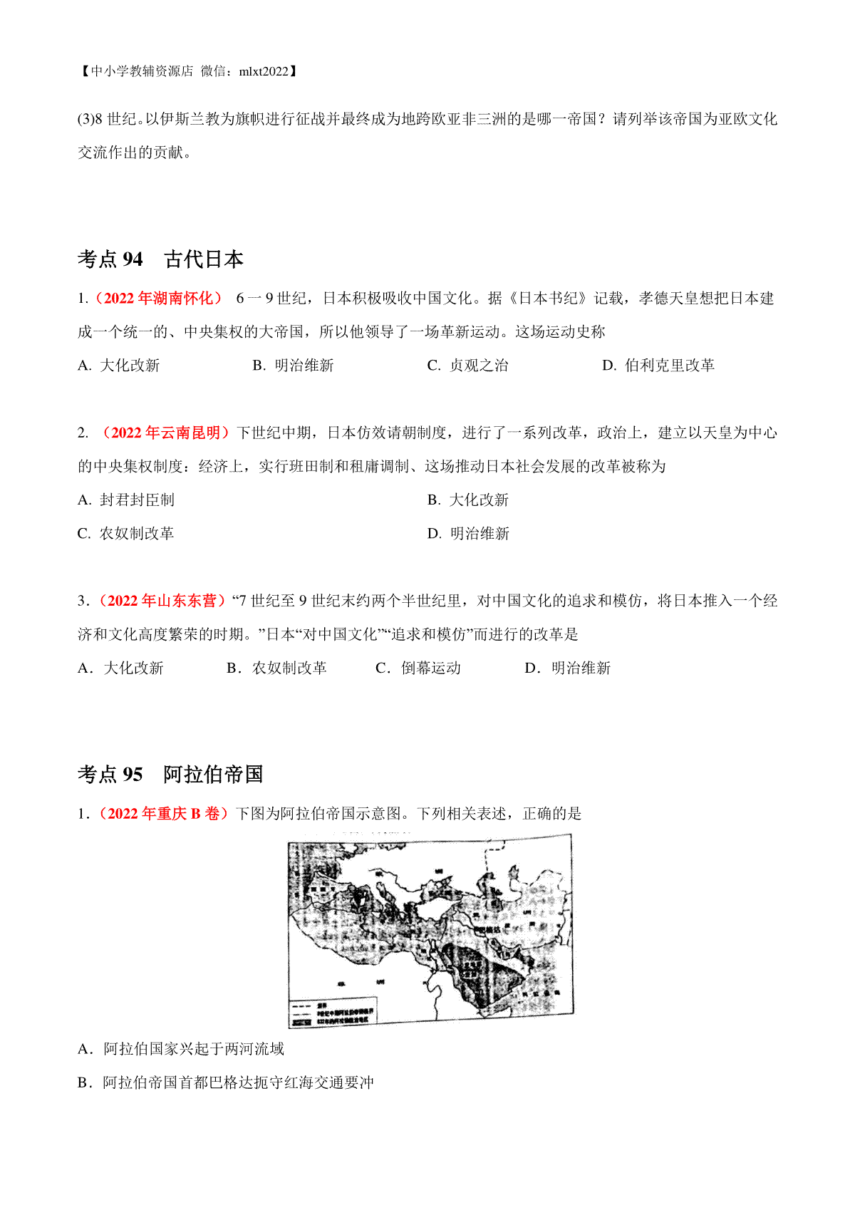 一、专题21 封建时代的欧洲和亚洲国家(第01期)-2022年中考历史真题分项汇编(全国通用)(原卷版)