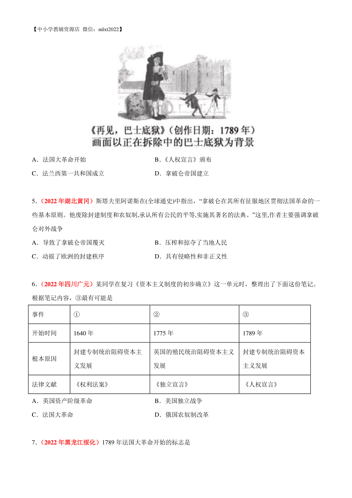 如果你想下载专题23 资本主义制度的初步确立(第02期)-2022年中考历史真题分项汇编(全国通用)(原卷版)DOC或PDF版,请点击本文末链接!