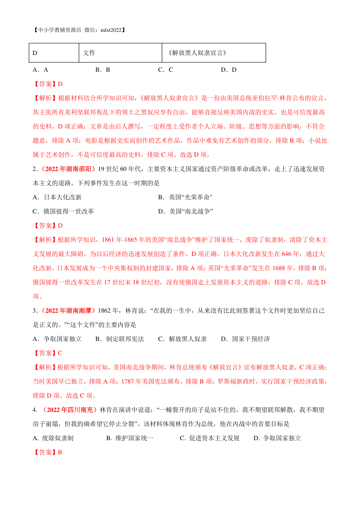 一、专题24 资本主义制度的扩展(第01期)-2022年中考历史真题分项汇编(全国通用)(解析版)