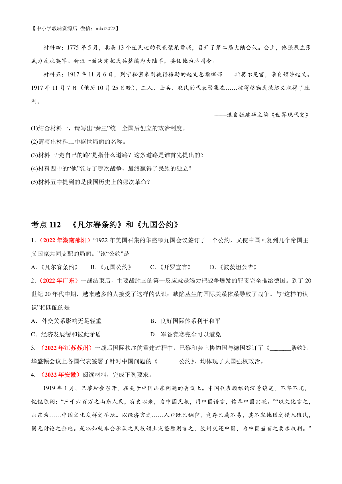 下载专题27 第一次世界大战和战后初期的世界(第01期)-2022年中考历史真题分项汇编(全国通用)(原PDF格式或doc