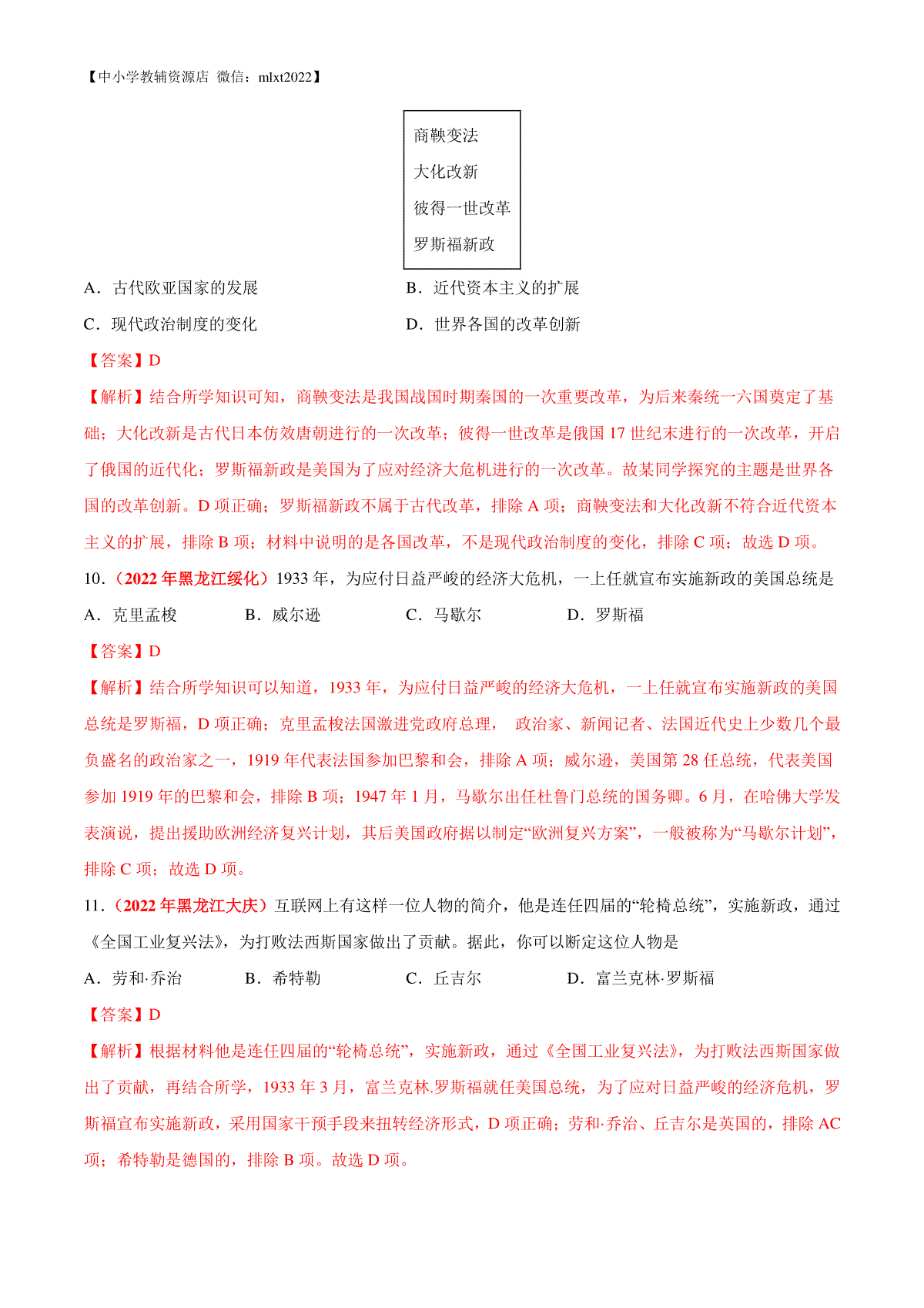 1.专题28 经济大危机和第二次世界大战(第02期)-2022年中考历史真题分项汇编(全国通用)(解析