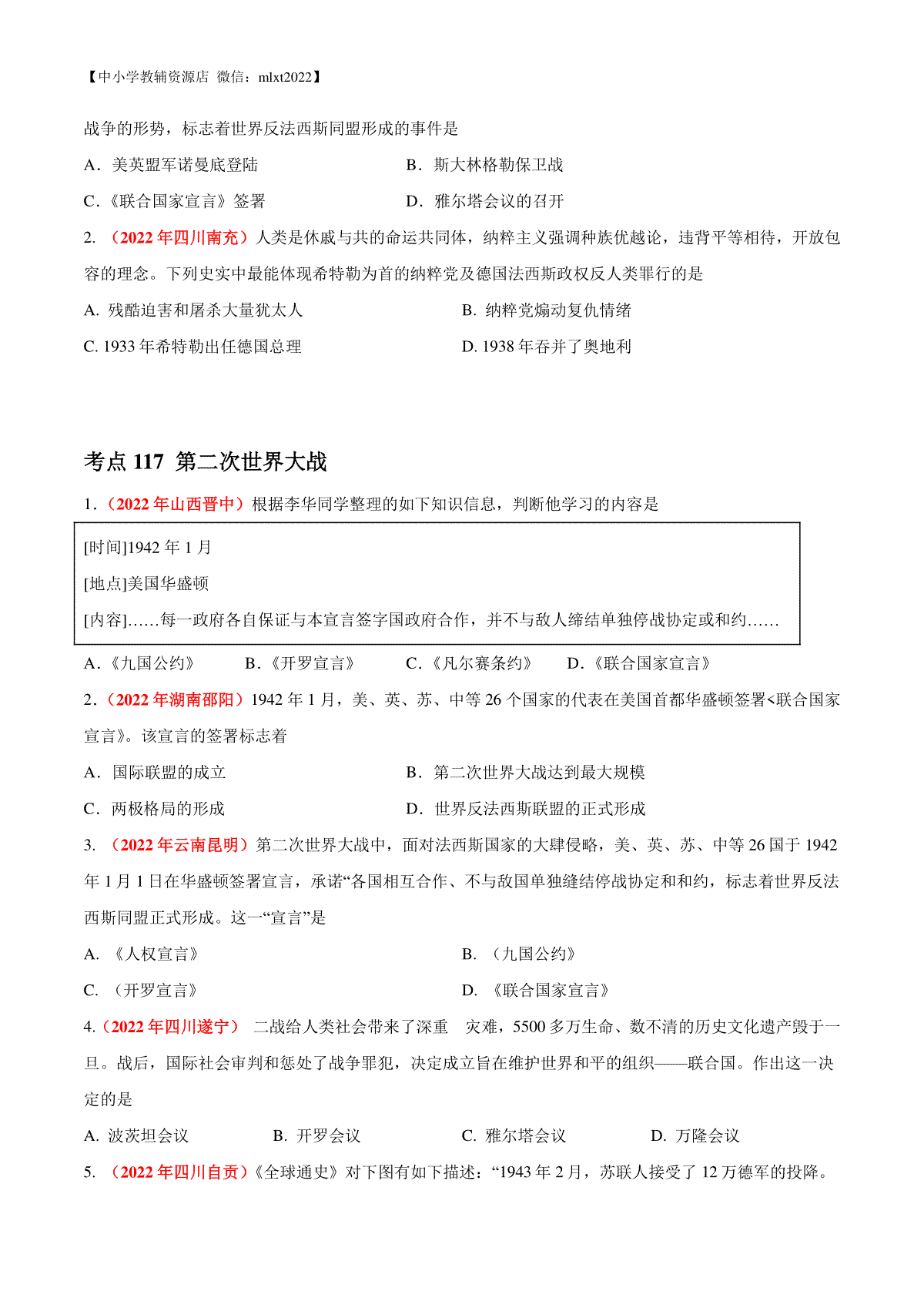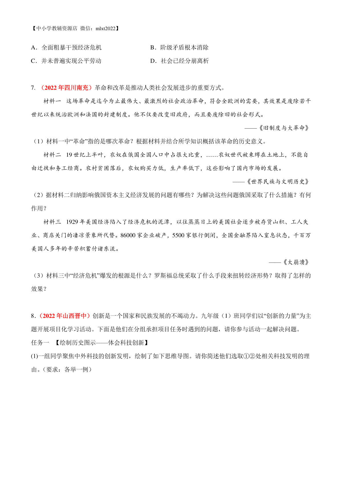一、专题28 经济大危机和第二次世界大战(第01期)-2022年中考历史真题分项汇编(全国通用)(原卷版