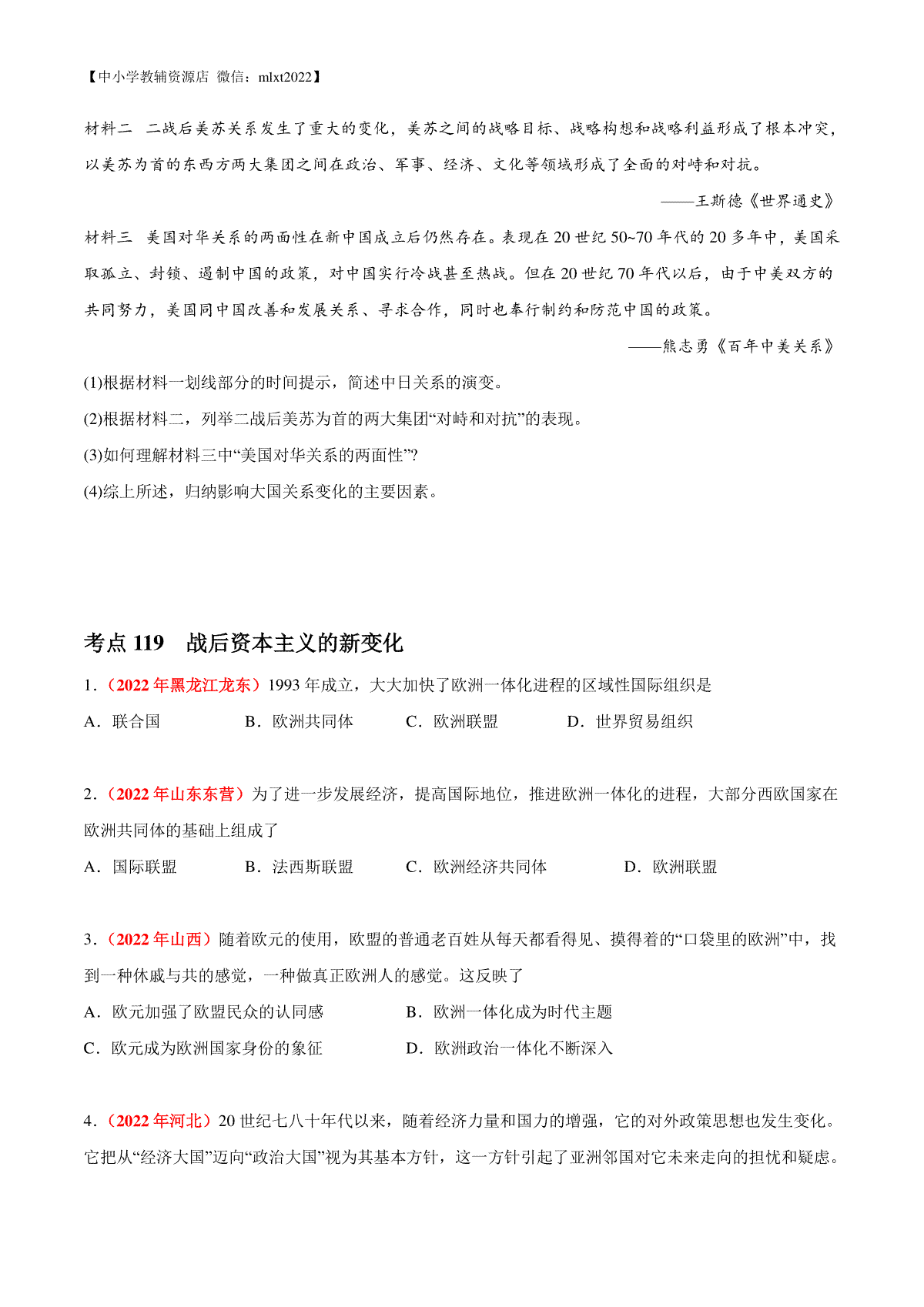 1.专题29 二战后的世界变化(第02期)-2022年中考历史真题分项汇编(全国通用)(原卷版)
