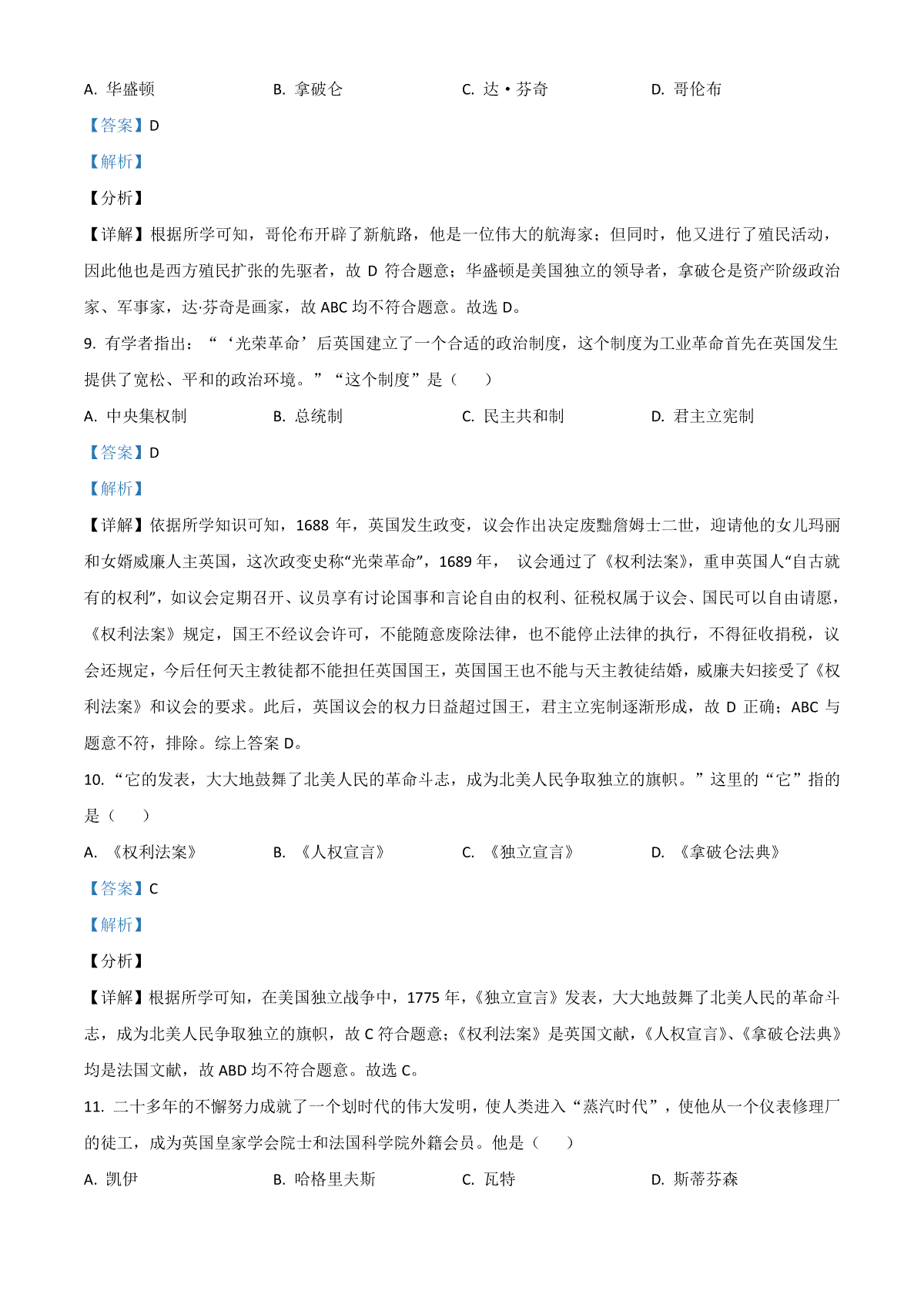 7.四川省德阳市2021年中考历史试题(解析版)