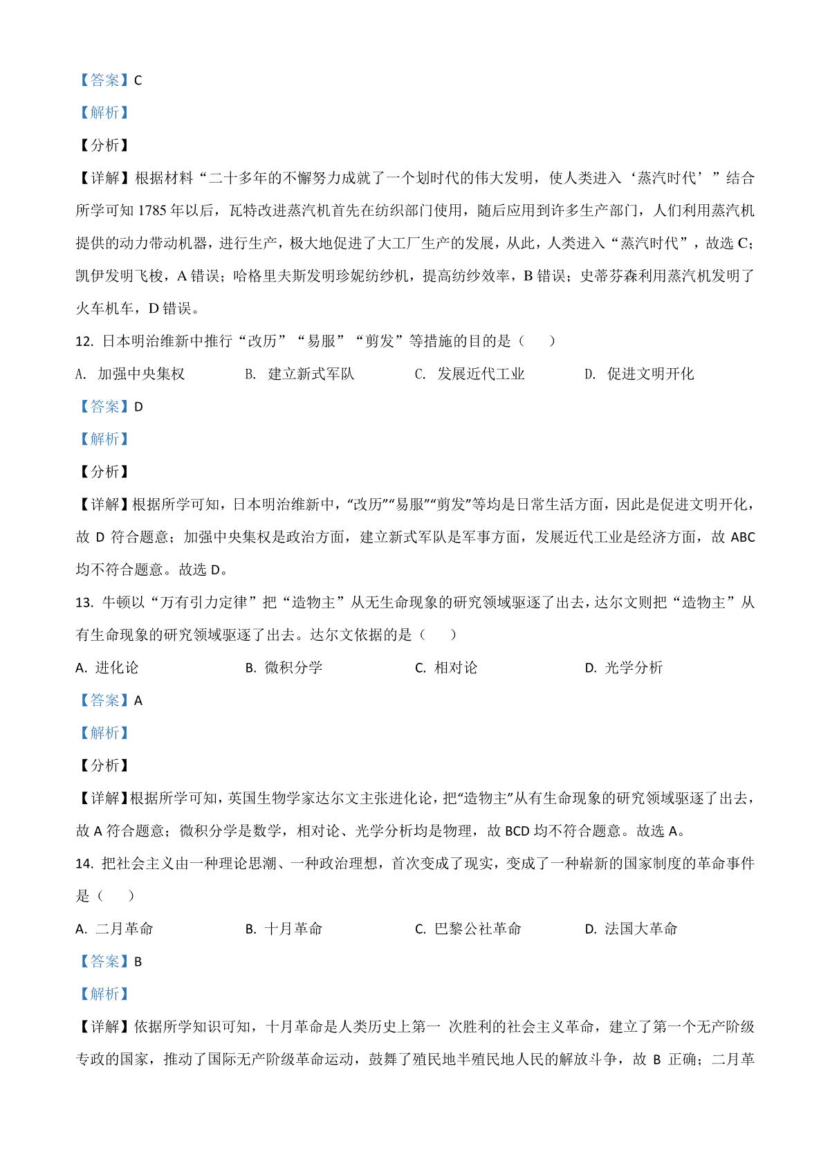 如果你想下载四川省甘孜州2021年中考历史试题(解析版)DOC或PDF版,请点击本文末链接!