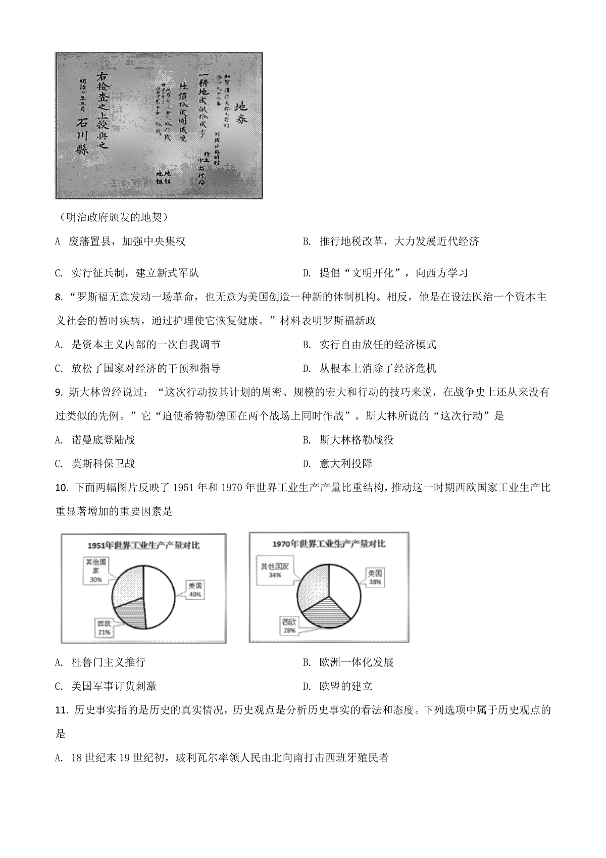 8.四川省甘孜州2021年中考历史试题(解析版)