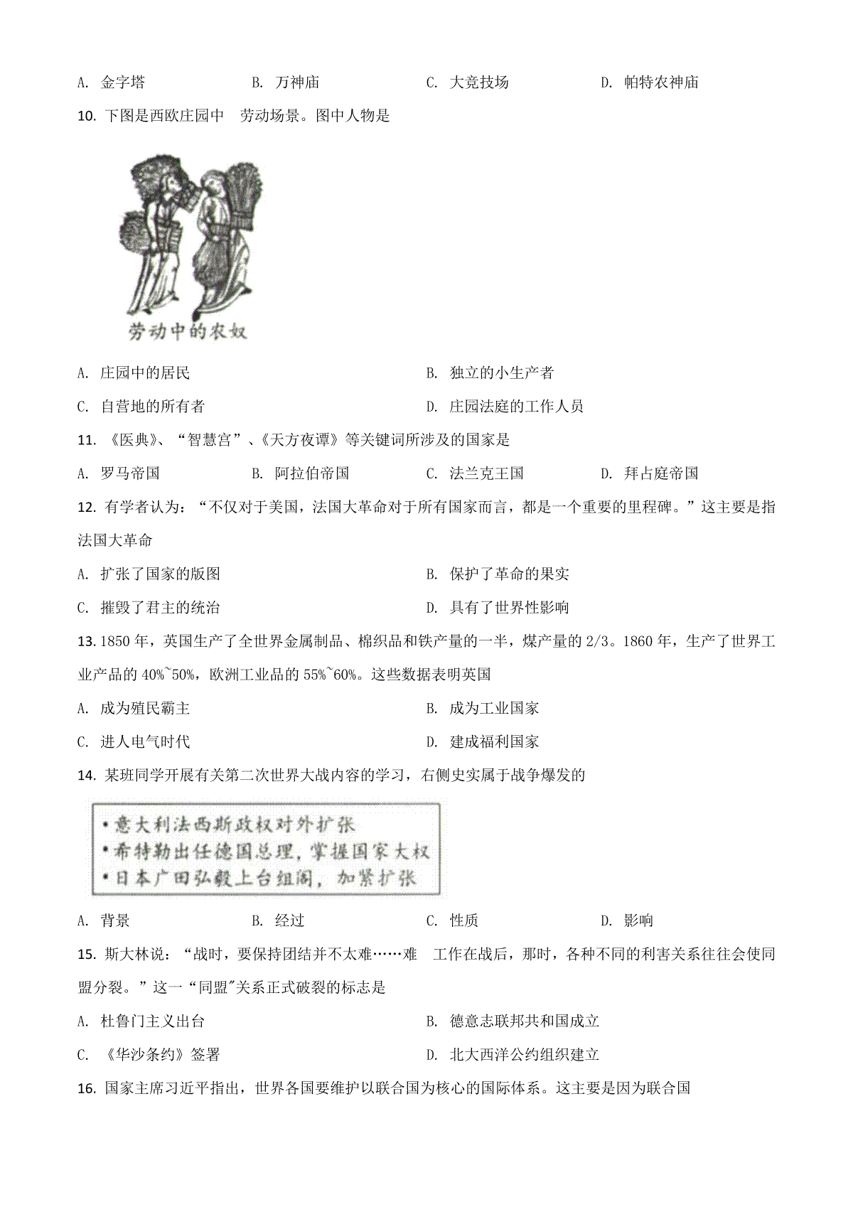 2020年安徽省历史中考试题及答案
