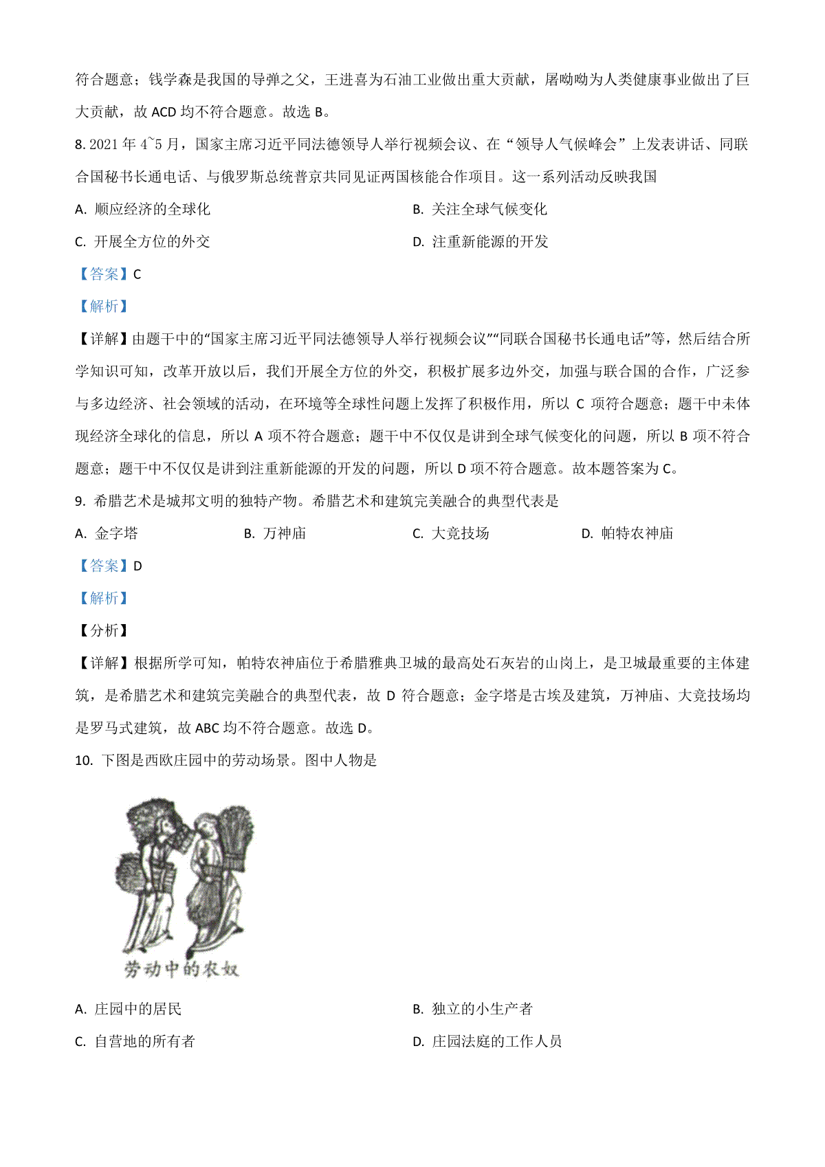 一、新疆维吾尔自治区、生产建设兵团2021年中考历史试题(解析版)