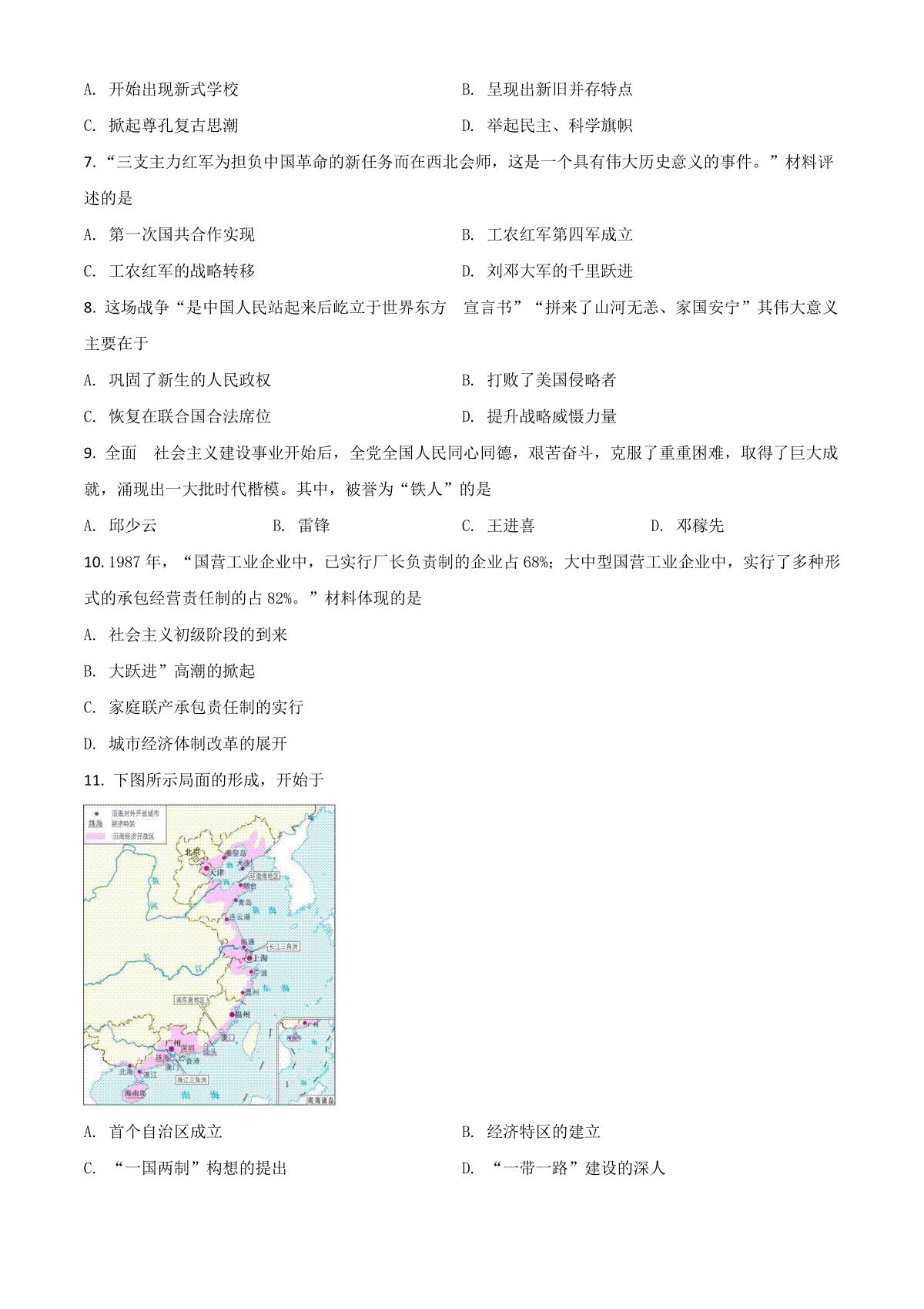 2.新疆维吾尔自治区、生产建设兵团2021年中考历史试题(解析版)