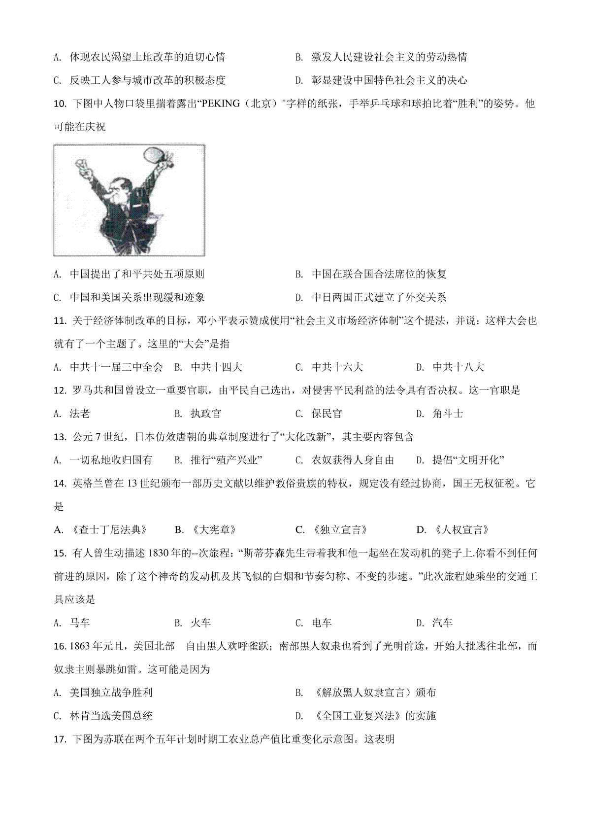一、江苏省扬州市2021年中考历史试题(原卷版)