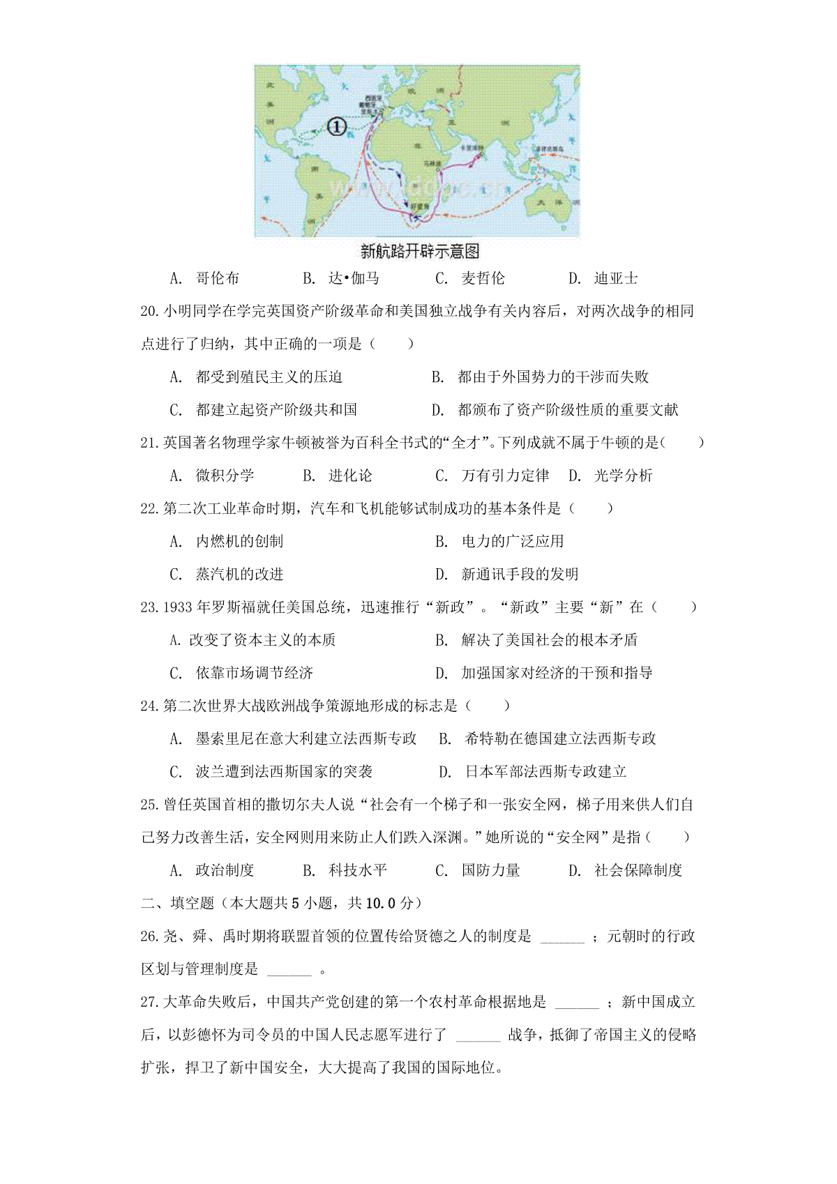 2010年山东省东营市中考历史试题及答案