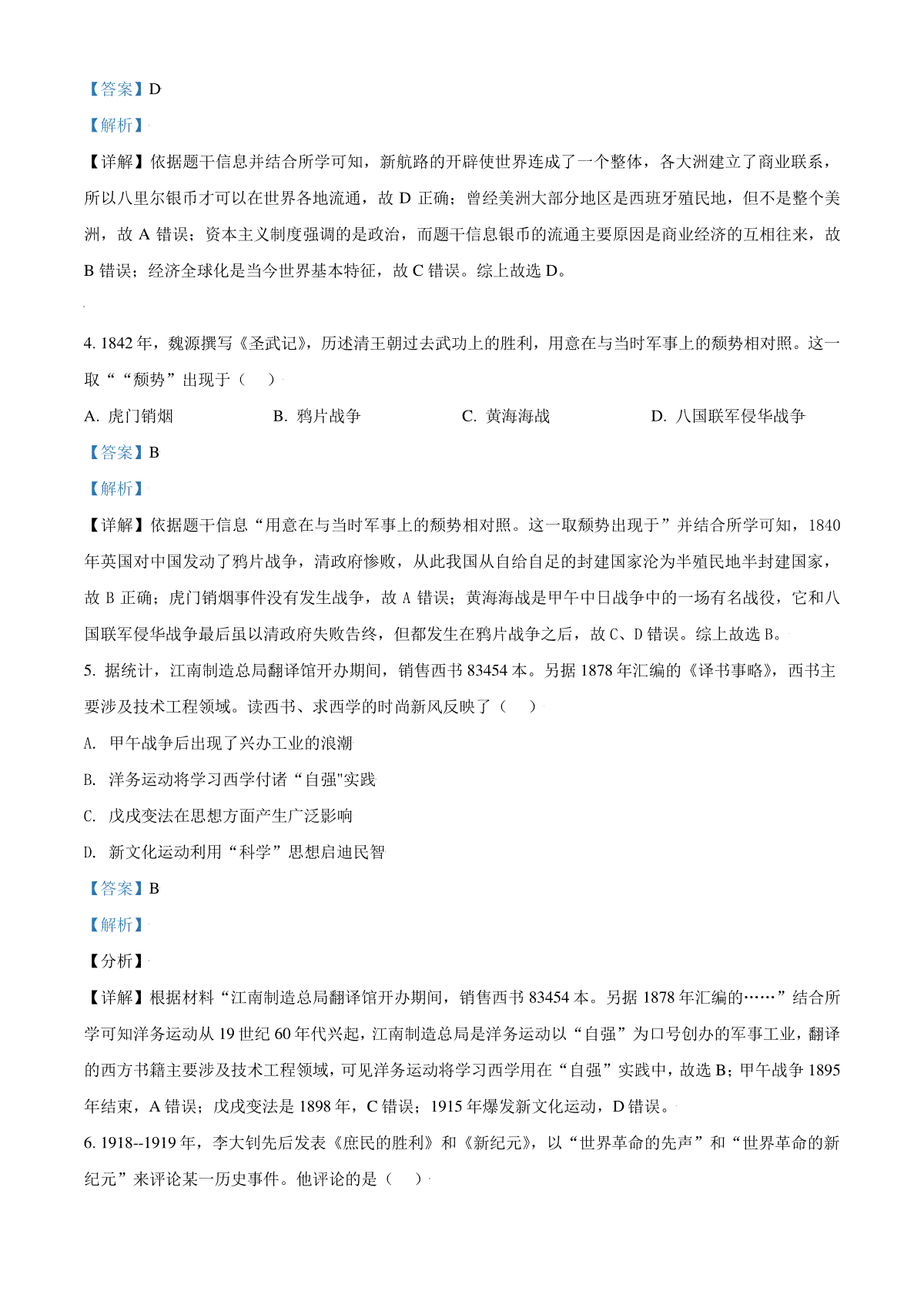5.浙江省嘉兴市2021年中考历史试题(解析版)