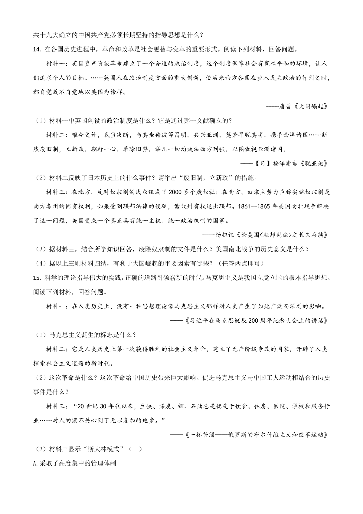 8.湖北省宜昌市2021年中考历史试题(解析版)