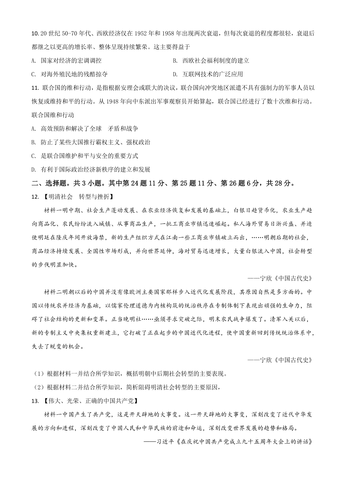 4.湖北省鄂州市2021年中考历史试题(解析版)