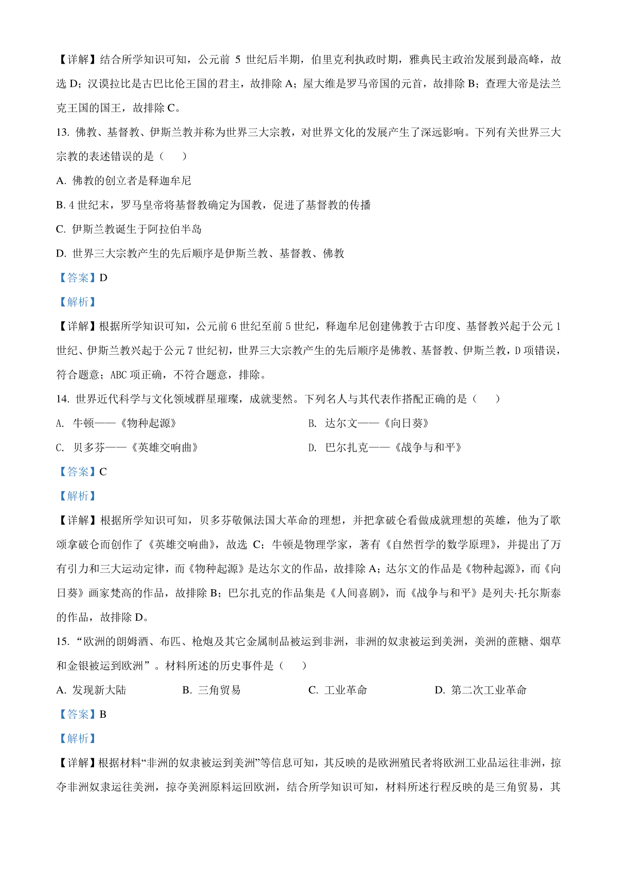 3.湖南省怀化市2021年中考历史试题(解析版)