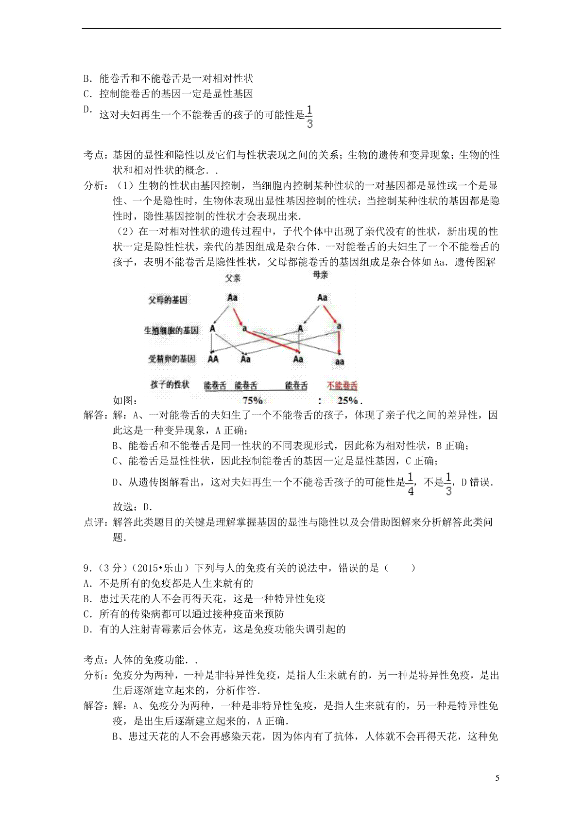 下载四川省乐山市2015年中考生物真题试题(含解析)PDF格式或doc