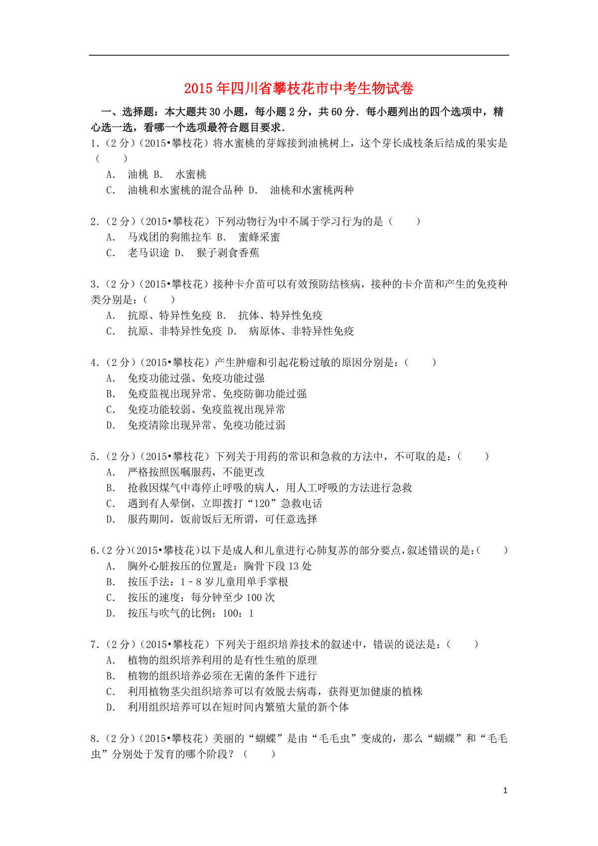下载四川省攀枝花市2015年中考生物真题试题(含解析)PDF格式或doc