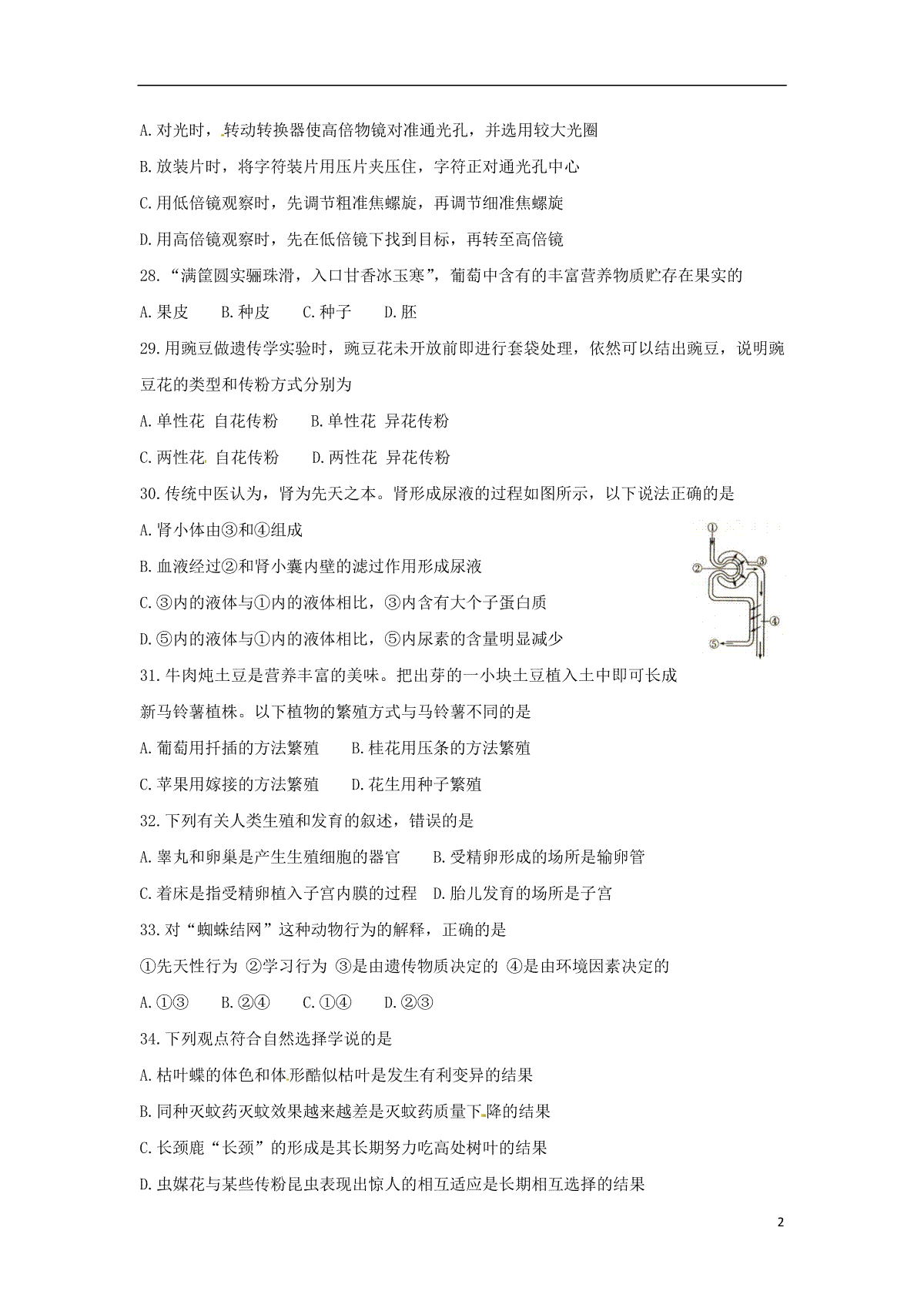 7.山东省东营市2015年中考生物真题试题(含答案)