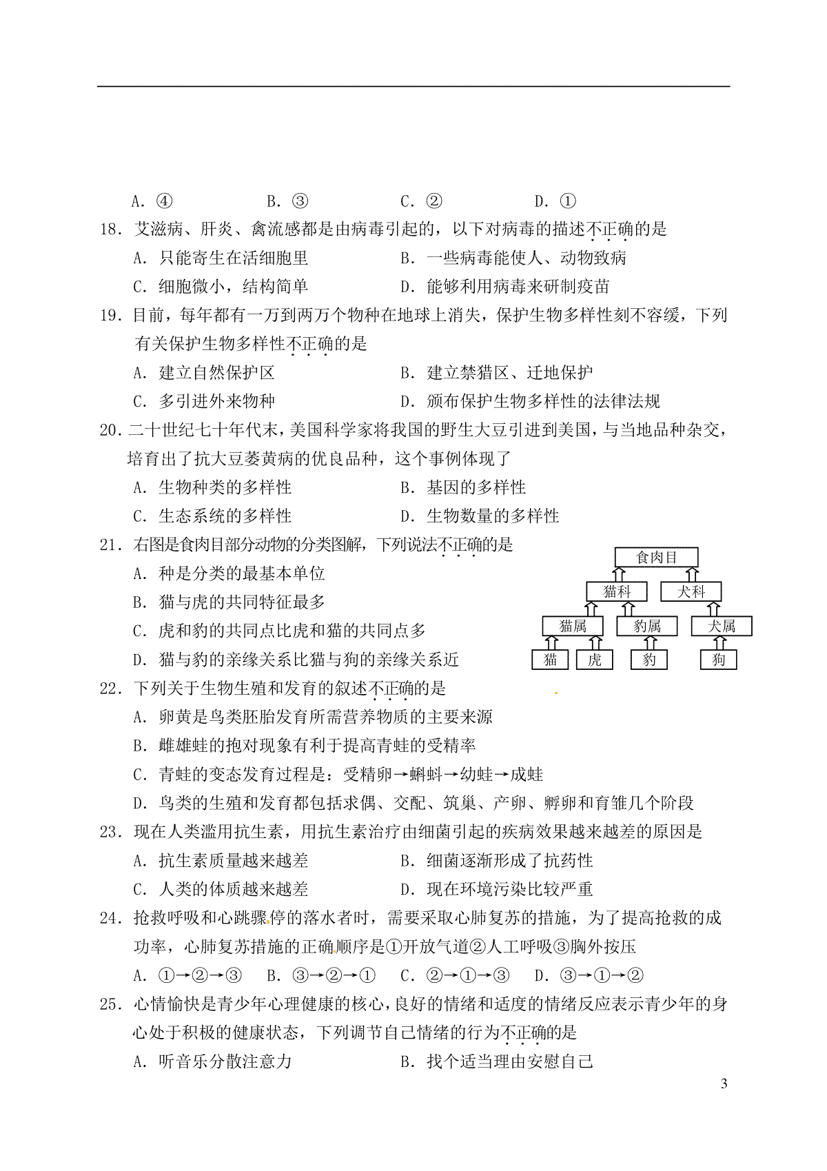下载湖南省娄底市2015年中考生物真题试题(含答案)PDF格式或doc