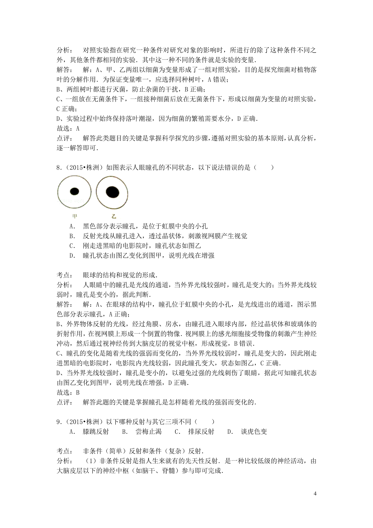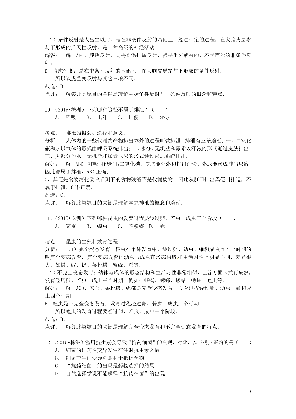 一、湖南省株洲市2015年中考生物真题试题(含解析)