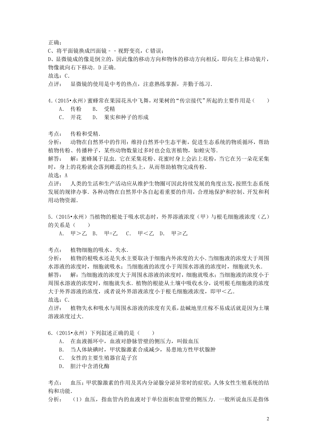 1.湖南省永州市2015年中考生物真题试题(含解析)