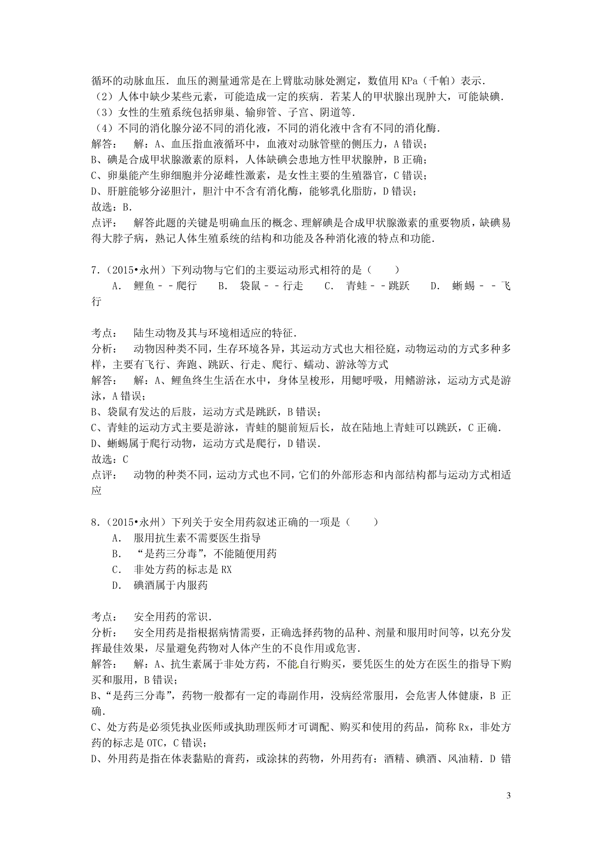 下载湖南省永州市2015年中考生物真题试题(含解析)PDF格式或doc