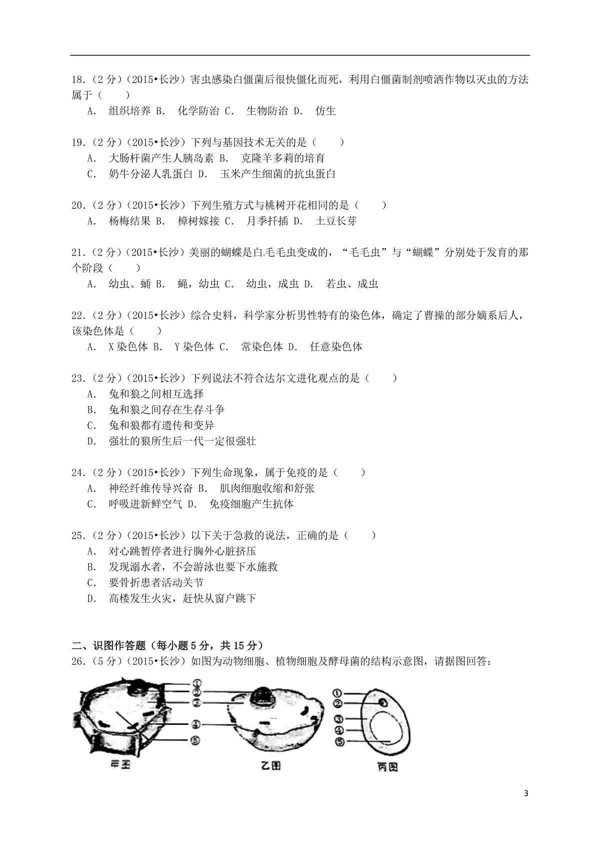 3.湖南省衡阳市2015年中考生物真题试题(含答案)