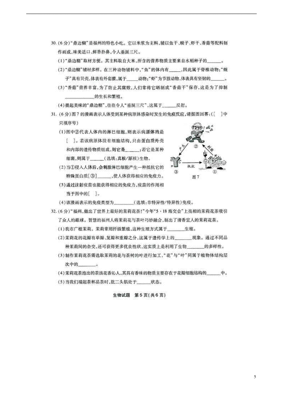 下载福建省福州市2015年中考生物真题试题(扫描版,含答案)PDF格式或doc