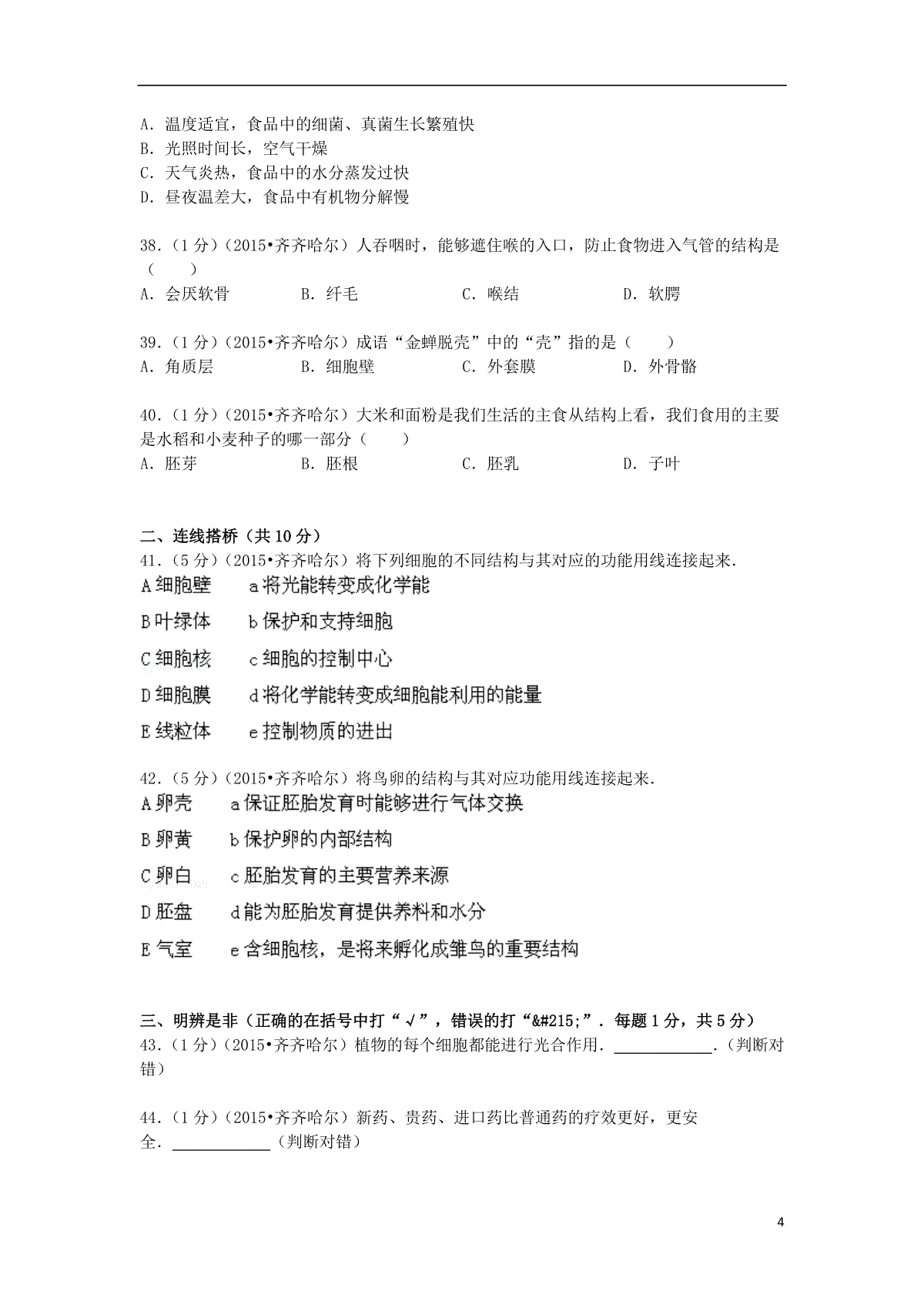 1.黑龙江省黑河市、齐齐哈尔市、大兴安岭2015年中考生物真题试题(含解析)