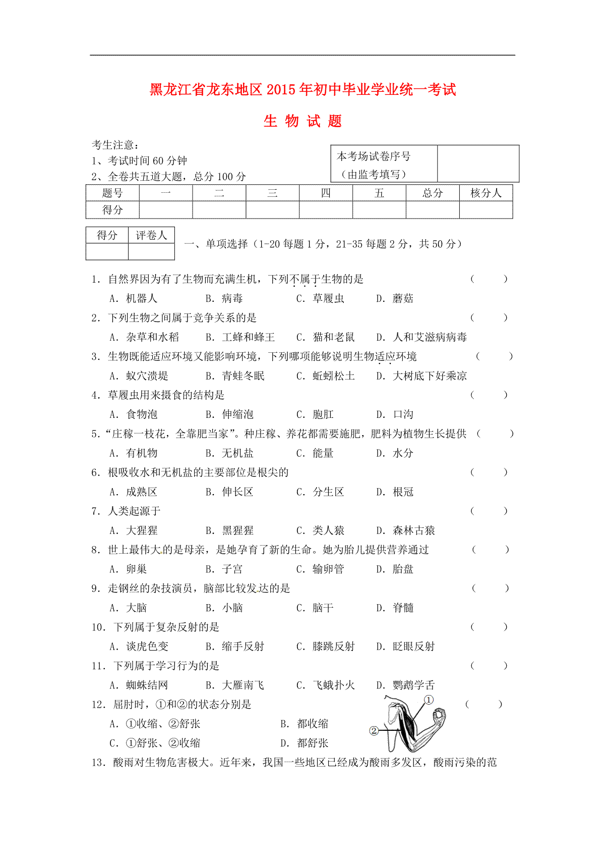 1.黑龙江省龙东地区2015年中考生物真题试题(含答案)