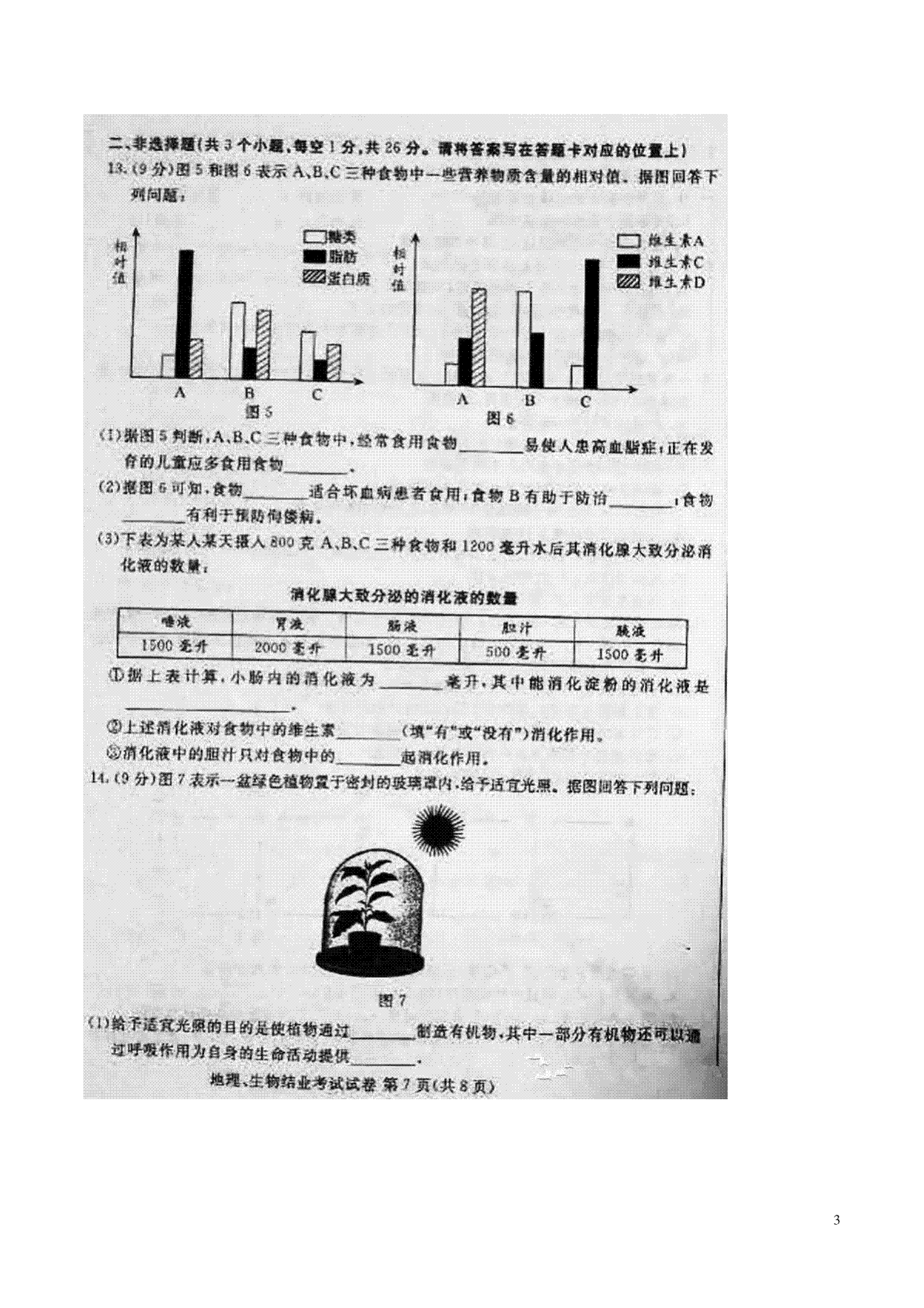 2.云南省昆明市2016年中考生物真题试题(扫描版,含答案)