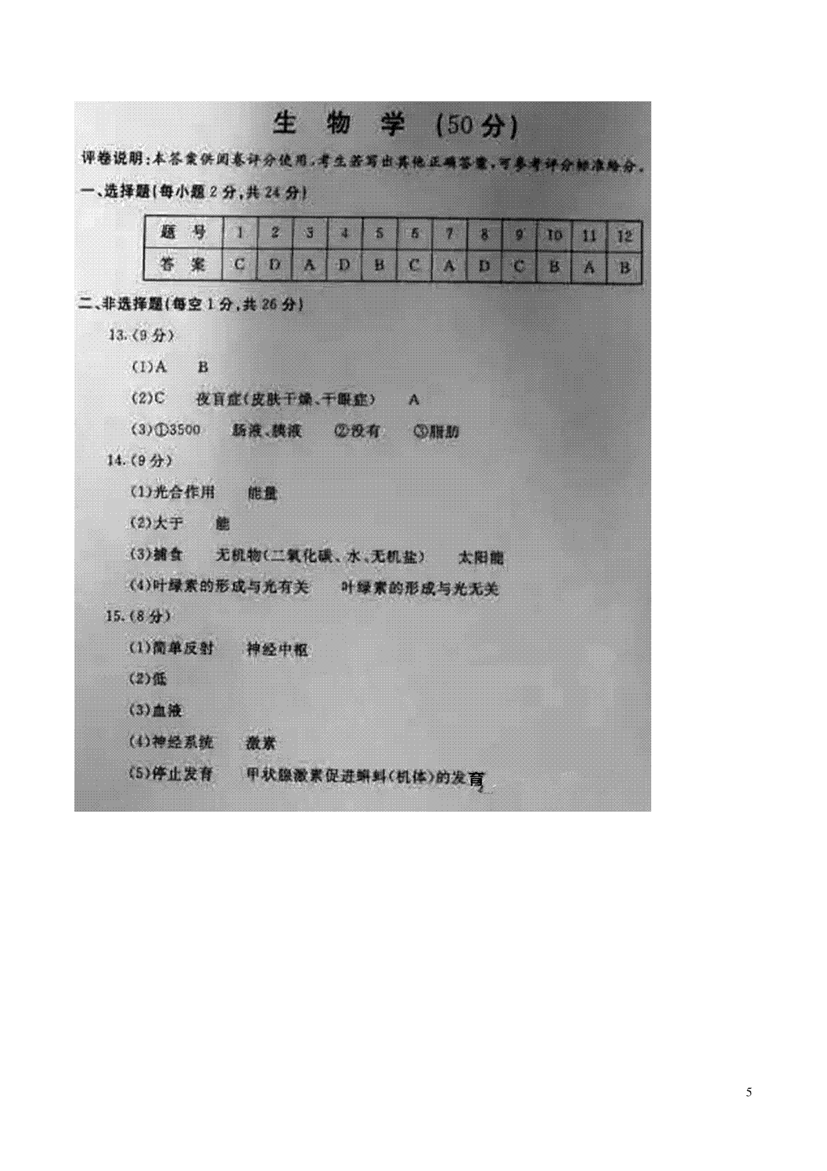 1.内蒙古包头市2016年中考生物真题试题(扫描版,含答案)