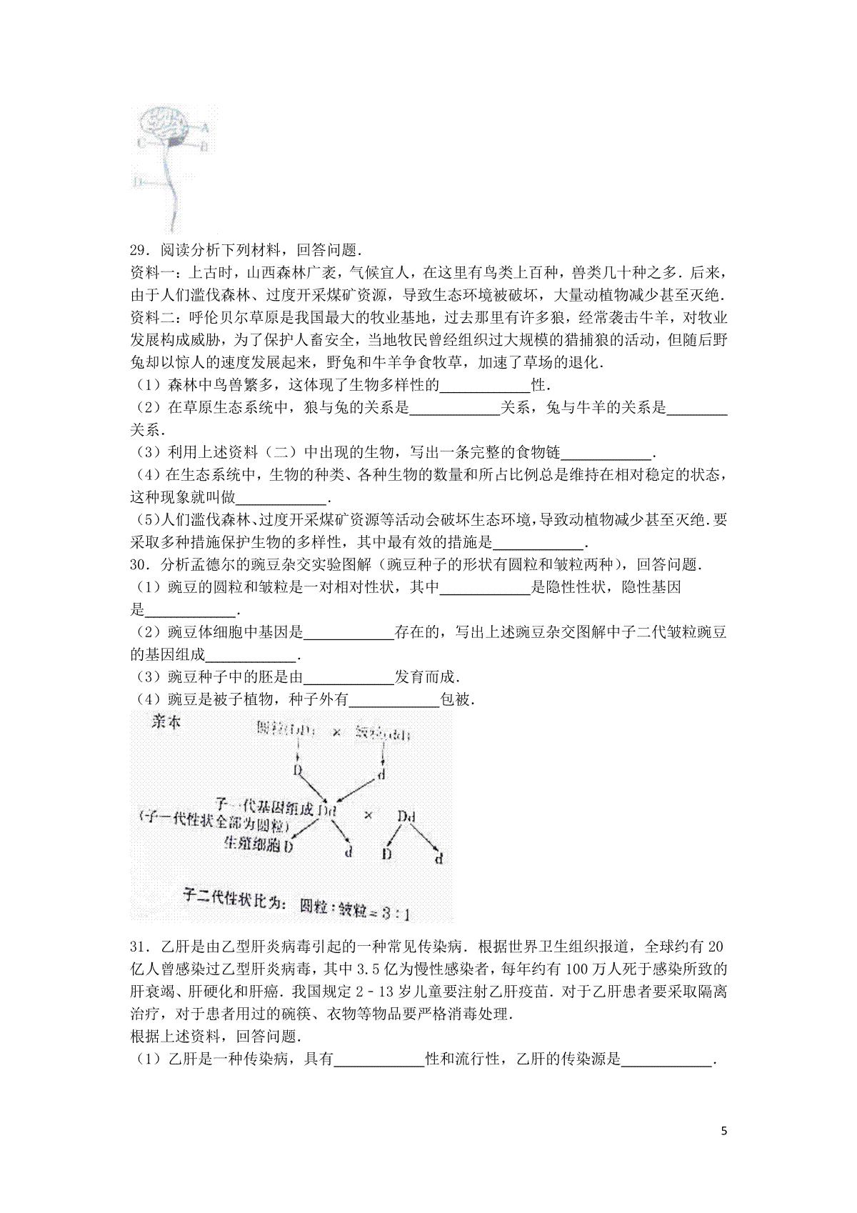 4.云南省昆明市2016年中考生物真题试题(扫描版,含答案)