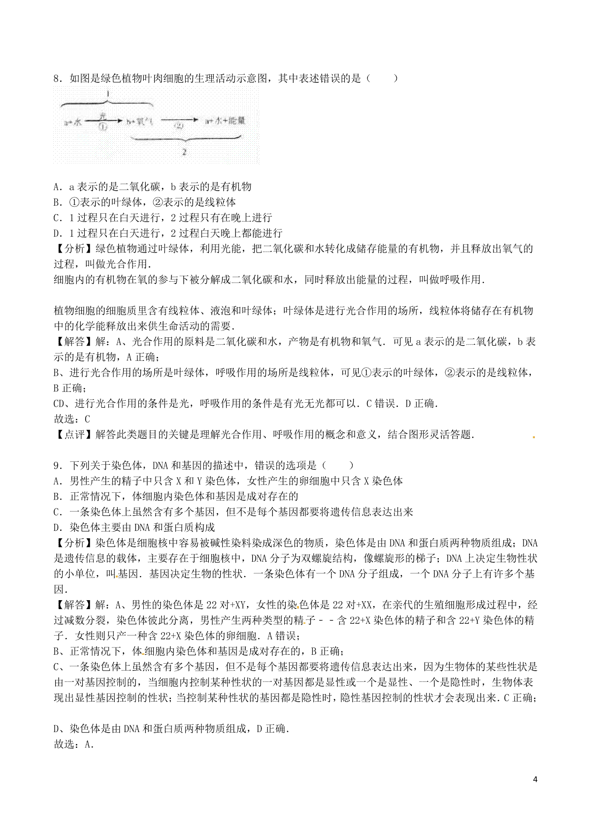 8.四川省广元市2016年中考生物真题试题(含解析)