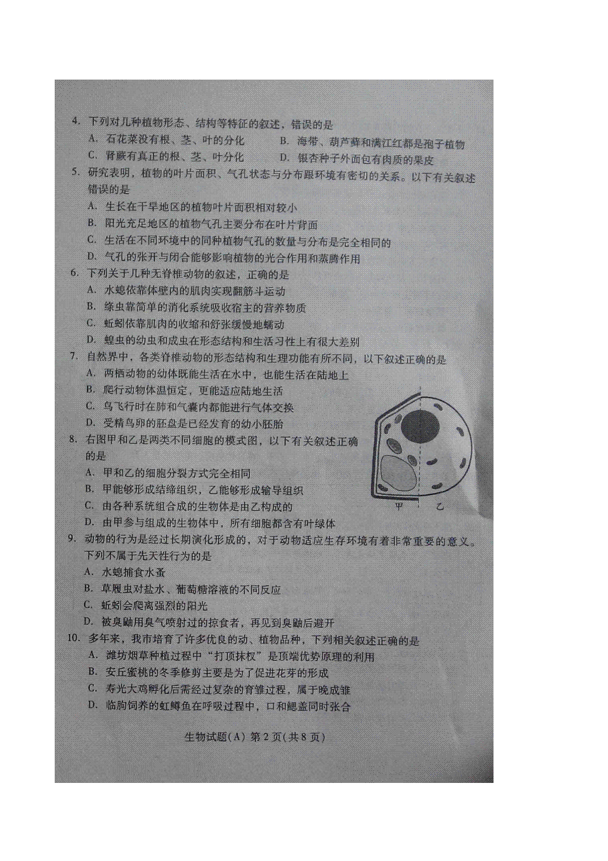 一、山东省潍坊市2016年中考生物真题试题(扫描版,含答案)