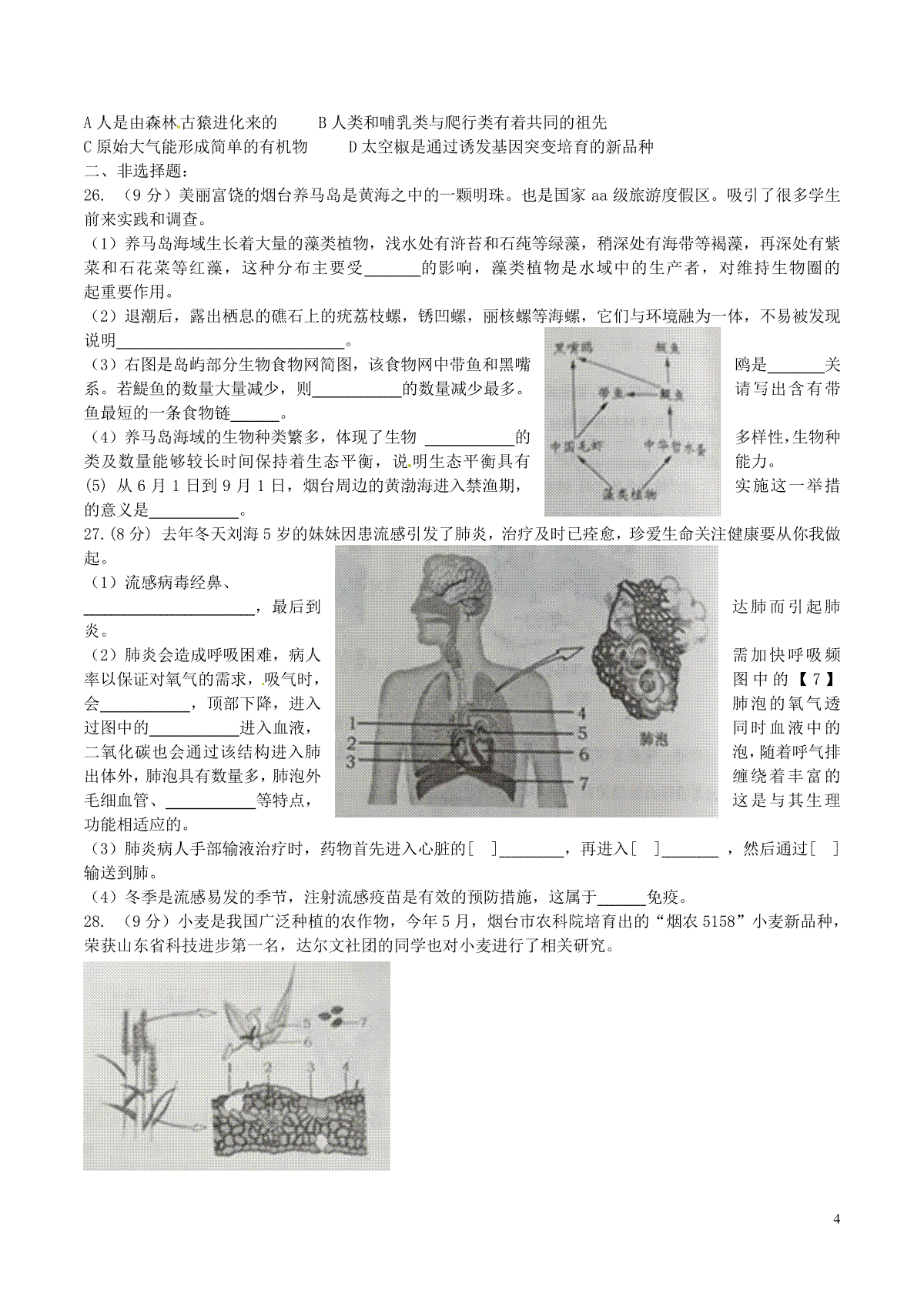 2.山东省潍坊市2016年中考生物真题试题(扫描版,含答案)