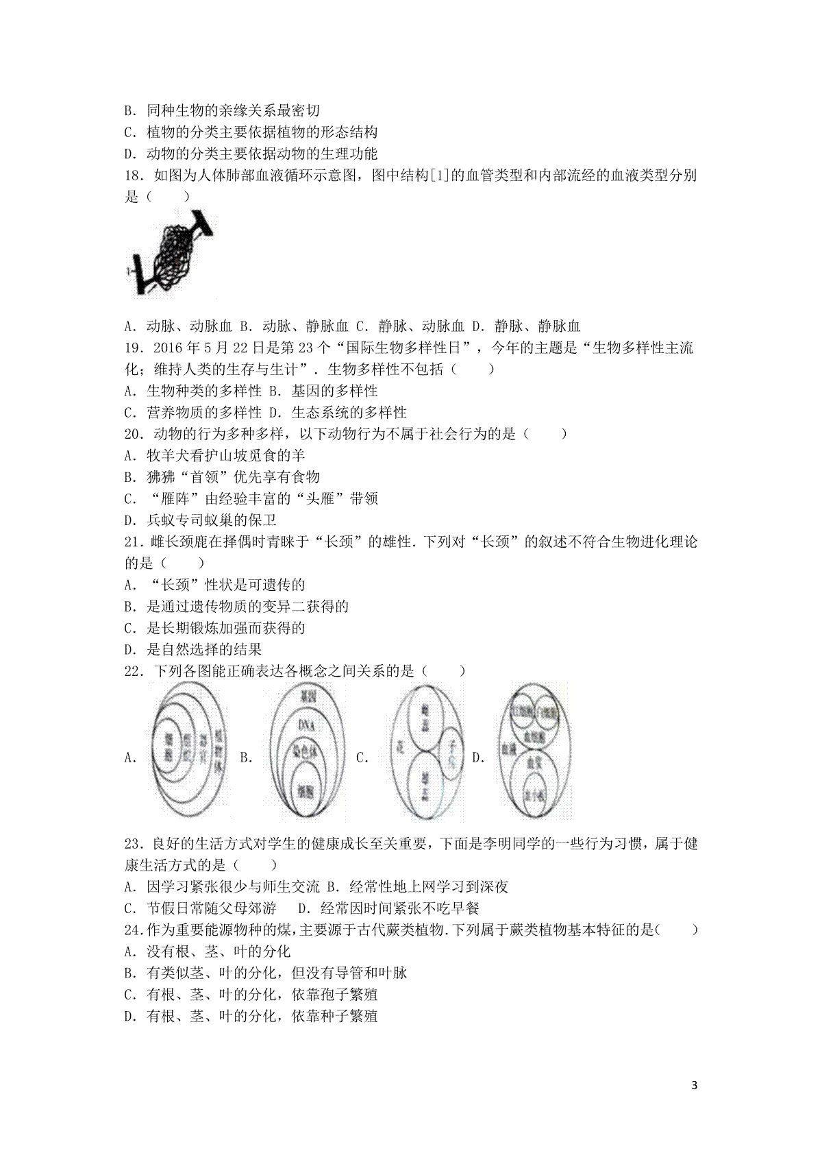 3.山东省潍坊市2016年中考生物真题试题(扫描版,含答案)