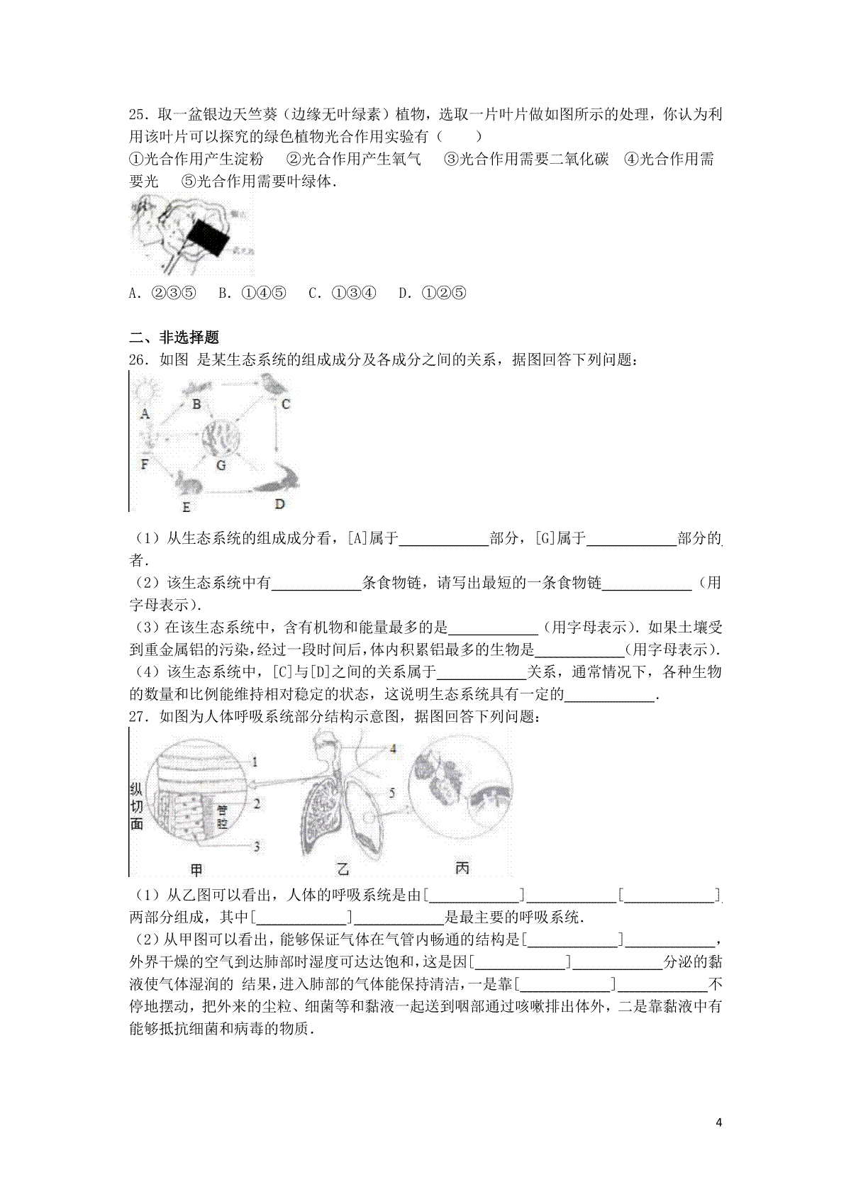 4.山东省滨州市2016年中考生物真题试题(含解析)