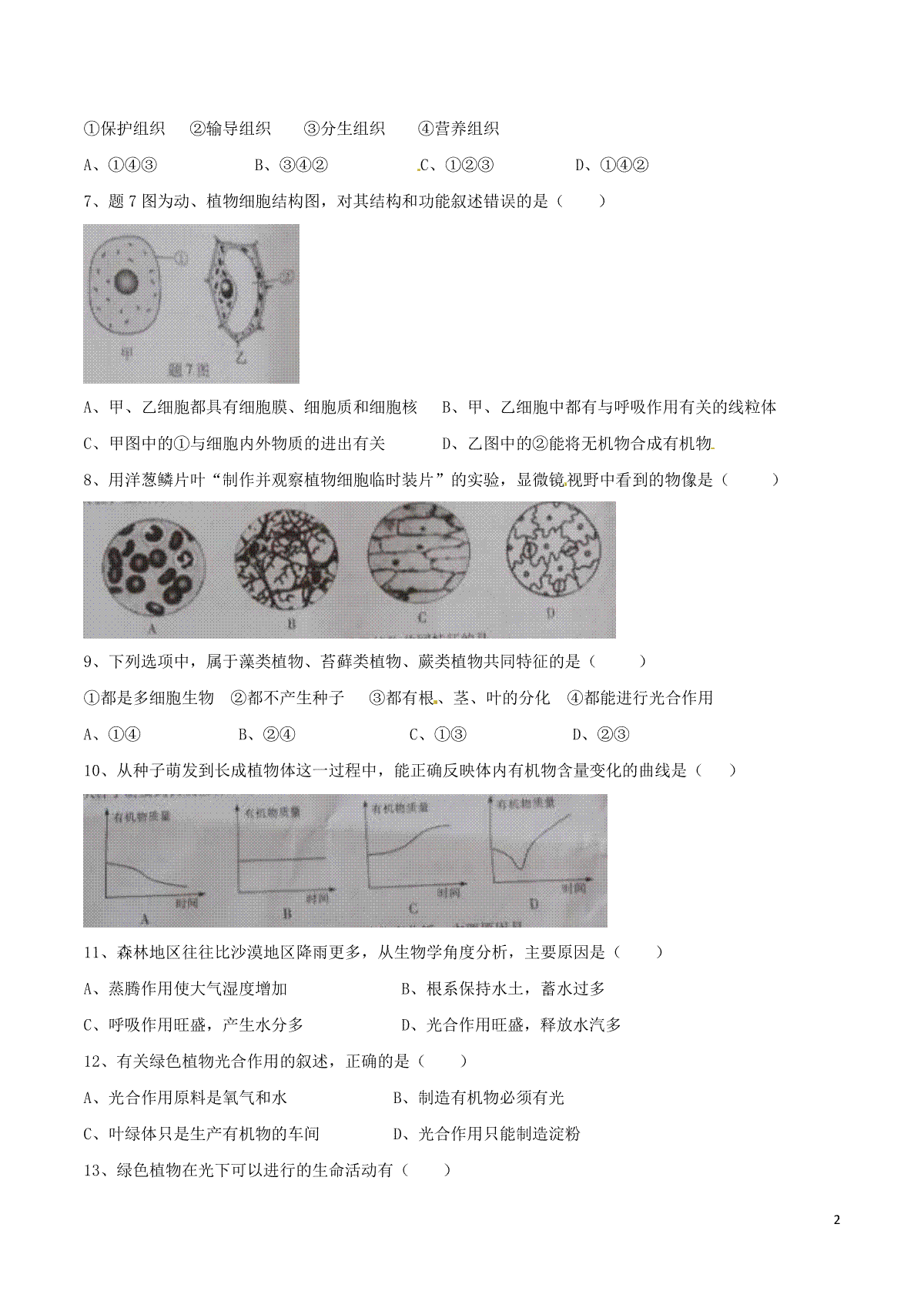 6.山东省潍坊市2016年中考生物真题试题(扫描版,含答案)