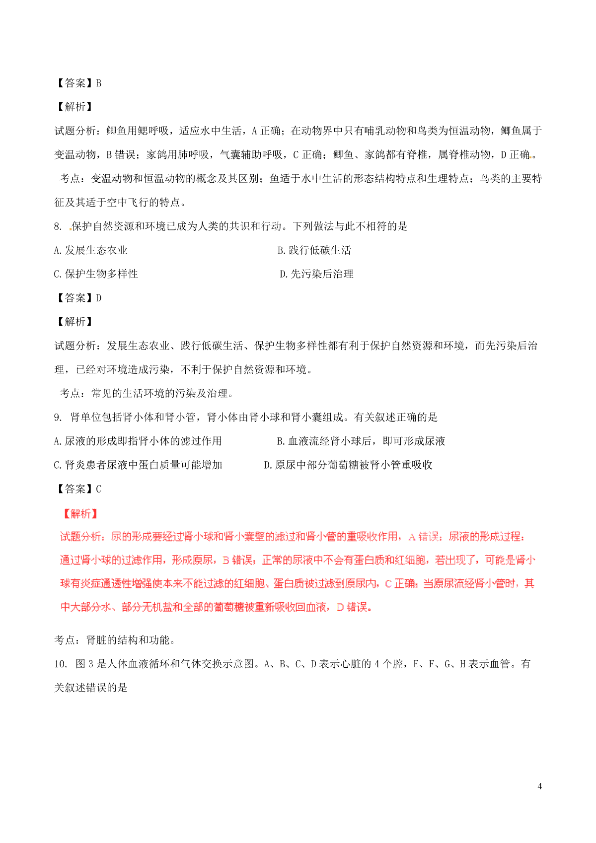3.江苏省常州市2016年中考生物真题试题(扫描版,含答案)