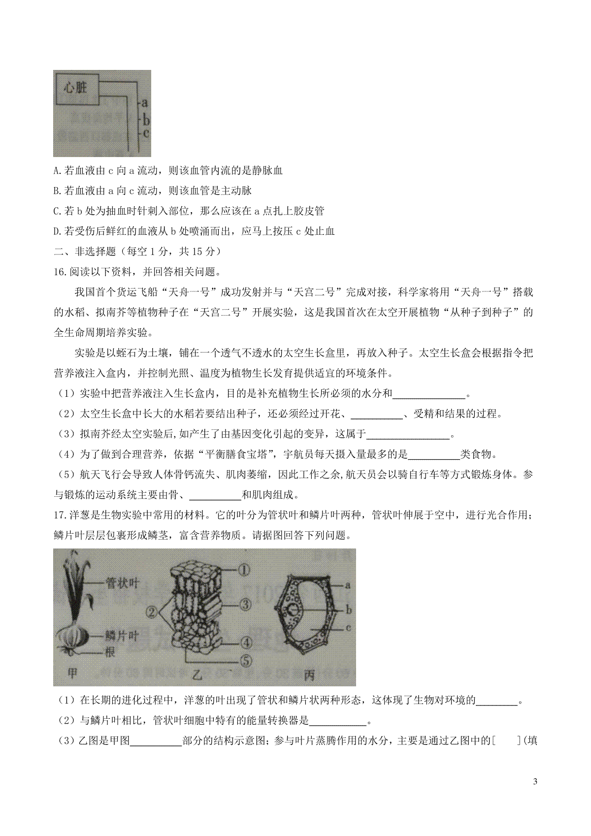 如果你想下载江西省2017年中考生物真题试题(含答案)DOC或PDF版,请点击本文末链接!