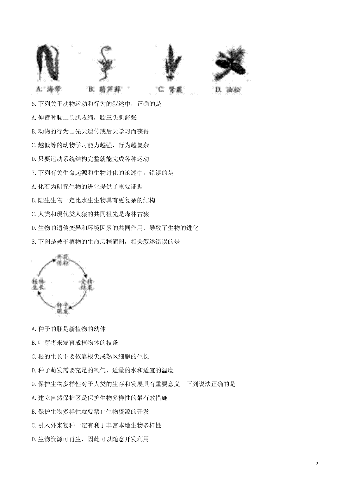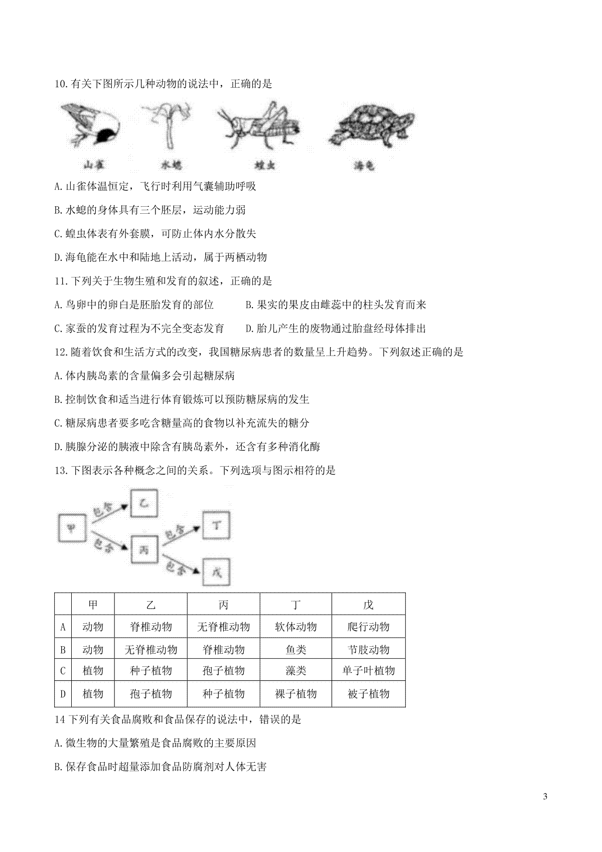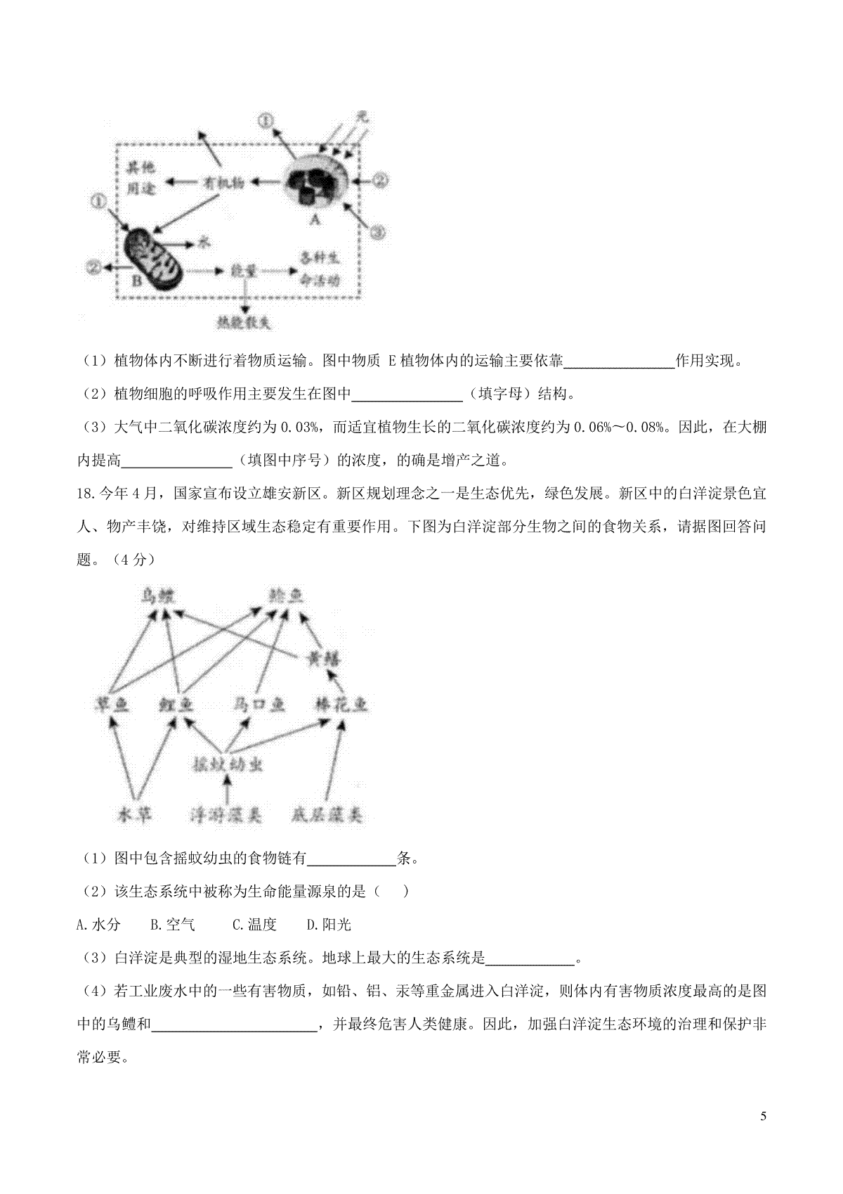 8.江苏省宿迁市2017年中考生物真题试题(扫描版,含答案)