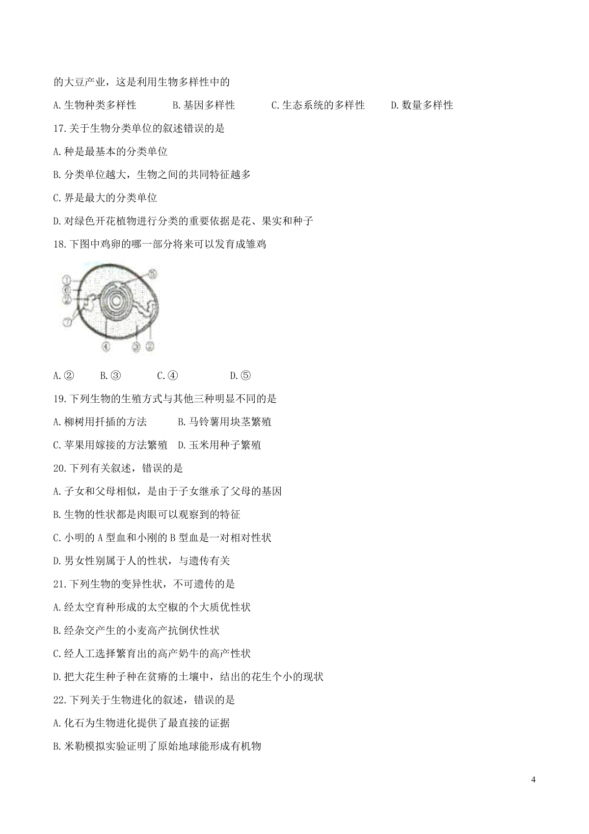 4.湖南省怀化市2017年中考生物真题试题(含答案)