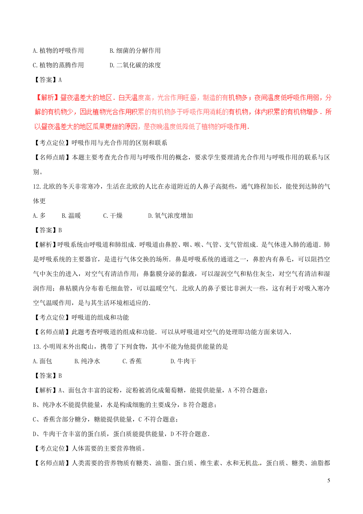 5.湖南省衡阳市2017年中考生物真题试题(含扫描答案)
