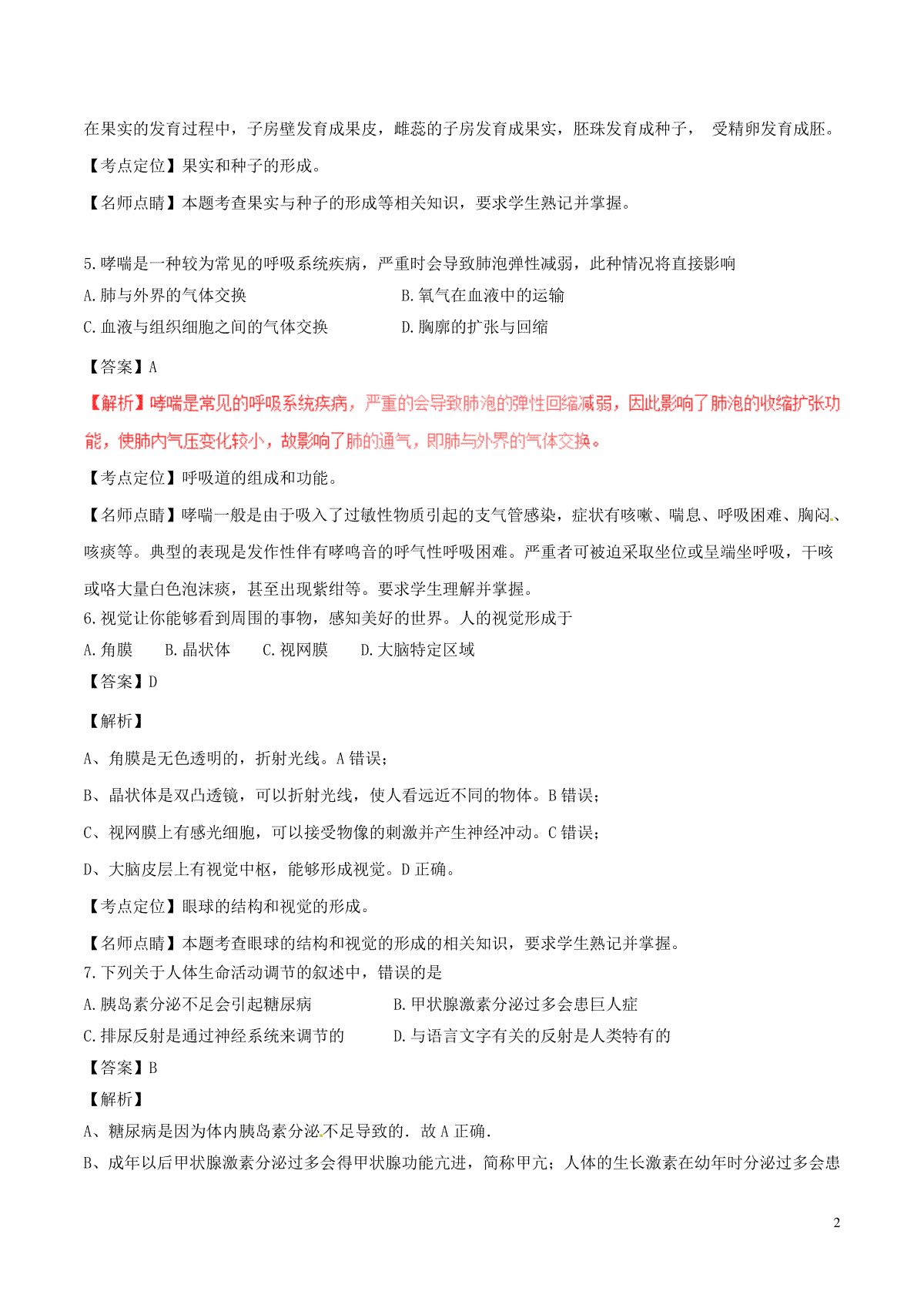 2.甘肃省平凉市2017年中考生物真题试题(含解析)