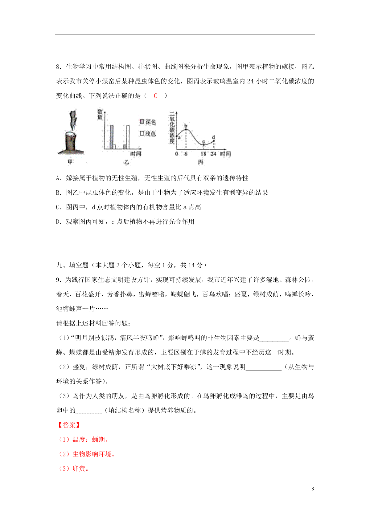 3.四川省自贡市2018年中考生物真题试题(含答案)