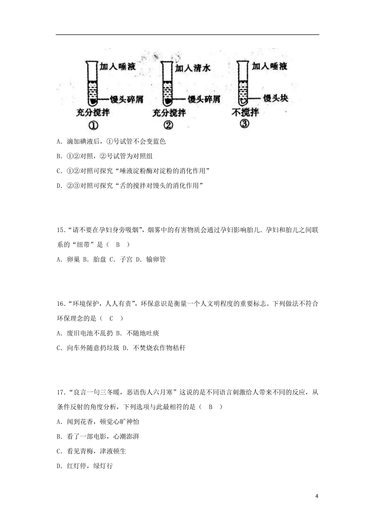 4.四川省雅安市2018年中考生物真题试题(含答案)