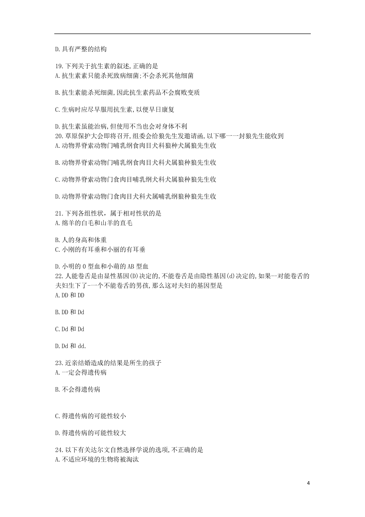4.安徽省宣城市2018年中考生物真题试题(含答案)