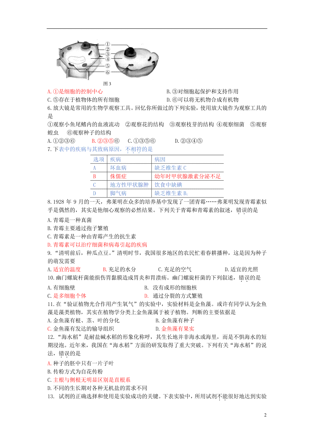 6.安徽省宣城市2018年中考生物真题试题(含答案)